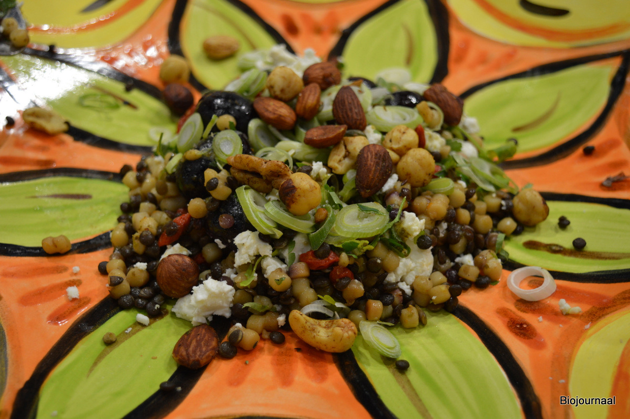Met een klein deel van de producten van GreenAge maakte Sascha deze Fregola-salade (parelcouscous) in Marrokaanse stijl.