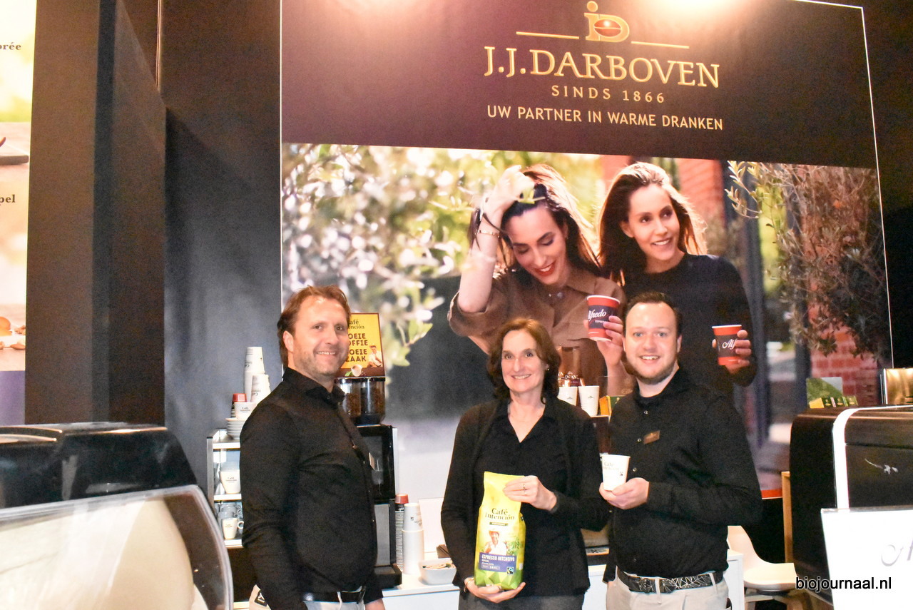 Marco Elders, Nathan van den Bosch en Mariët ter Veld met de Cafe Intencion koffie van JJ Darboven