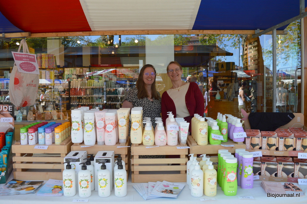 Desiree Webb en Sanderijn van der Linden waren er namens GreenHub bij. Voor hen in de kraam onder meer een groot deel van het Attitude-aanbod.