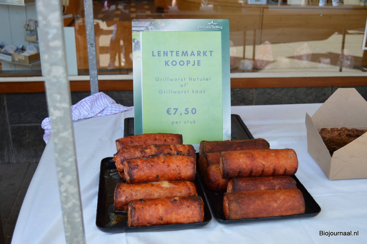 Een Lentemarkt koopje: biologische grillworst in twee varianten.