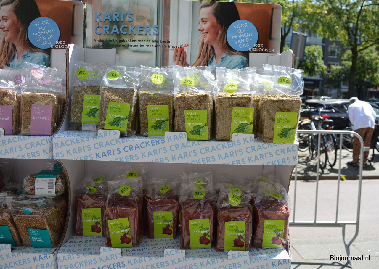 Ton: "En nieuw zijn deze groentecrakers van Kari's Crackers, in de smaken Spinazie & Prei en Rode biet."