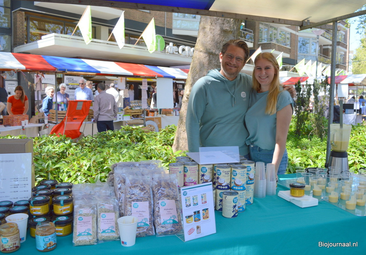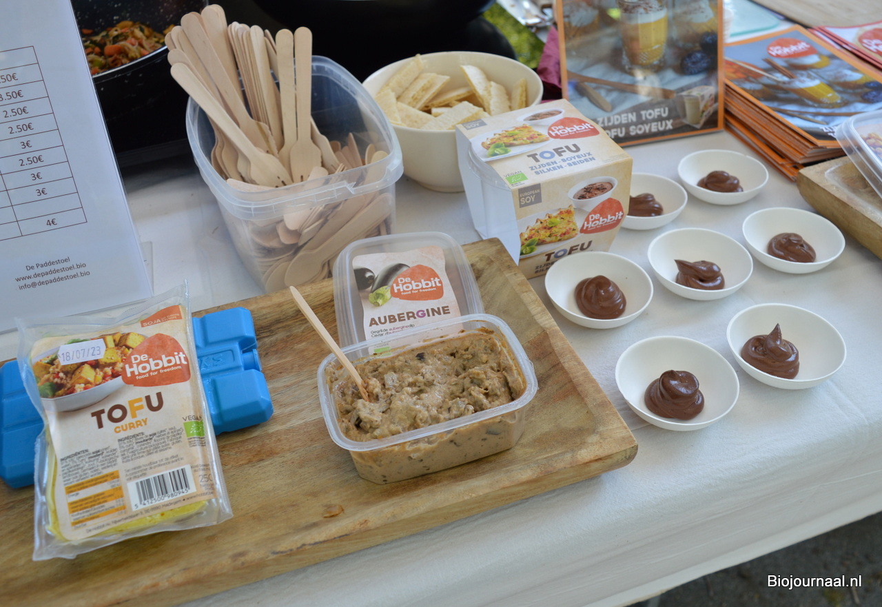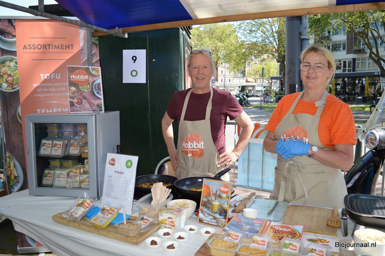 Luc van den Heede en Mireille Wagenaar lieten proeven van de plantaardige producten van de Hobbit en De Paddestoel.