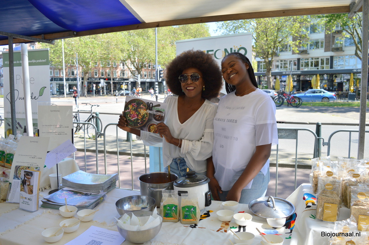 Solange Domaye en Laetitia bij Symfonio. Ze hadden diverse gerechten klaargemaakt met het authentieke Afrikaanse graan. Solange toont het nieuwe kookboek met 10 makkelijk te maken fonio recepten.