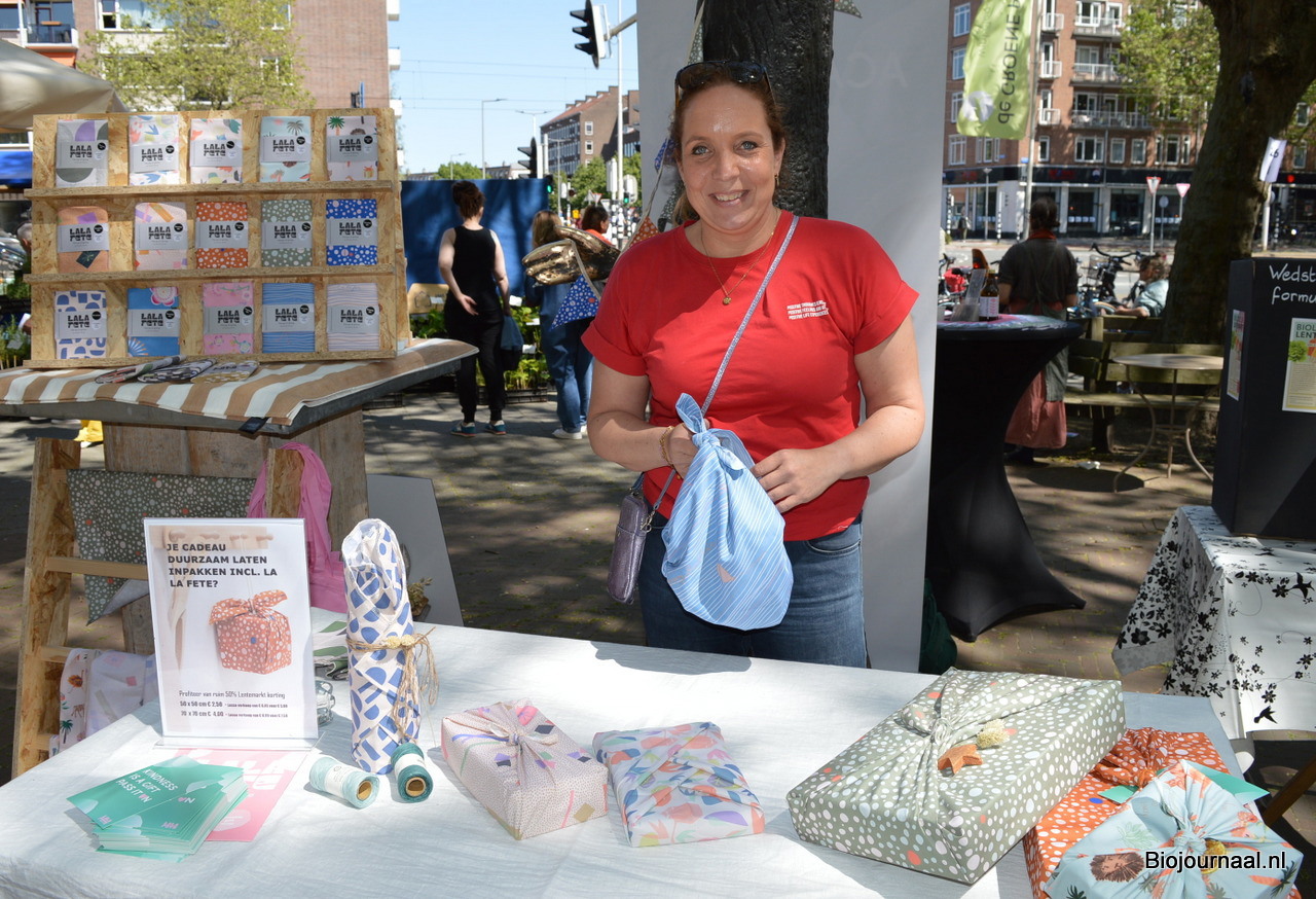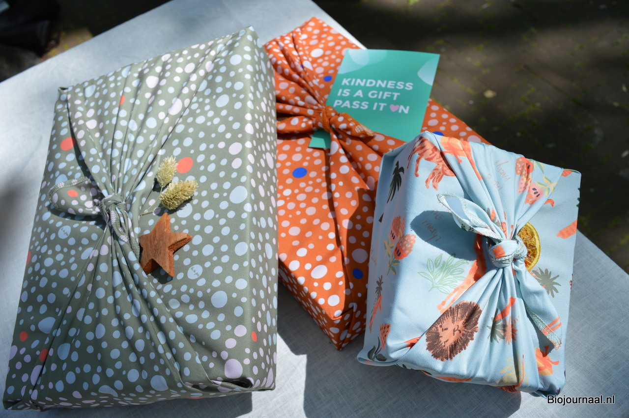 Marieke Veenstra toonde wat opties van La La Fete: een duurzaam alternatief voor inpakpapier.
