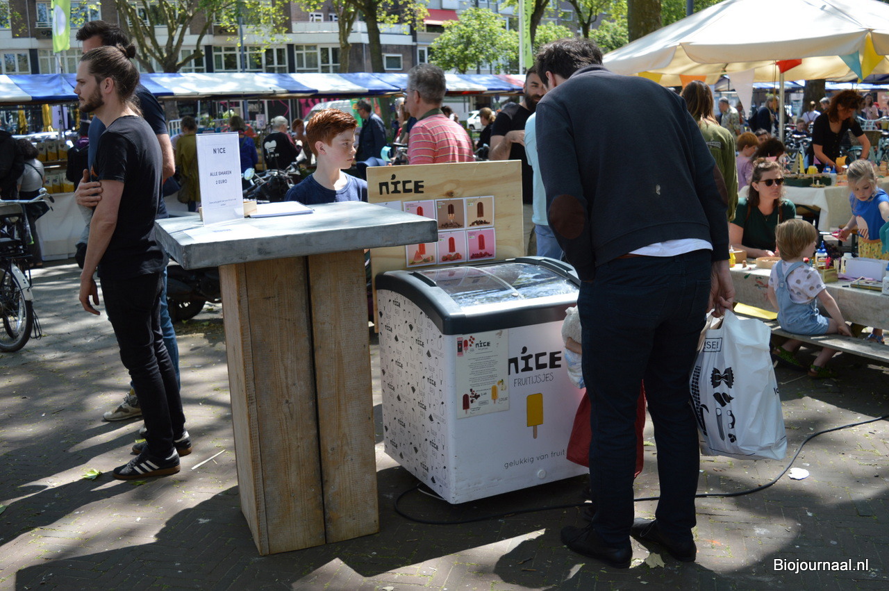 Verkoeling zoeken kon met de biologische fruitijsjes van N'ice.