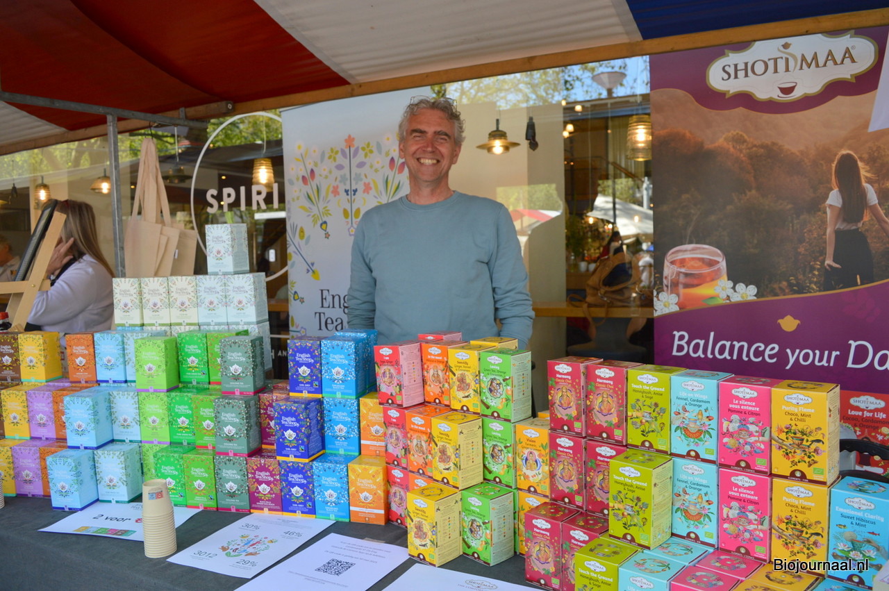 Pieterjan Kok van Good Foods vertelde de bezoekers aan zijn kraam alles over de Hampstead thee.