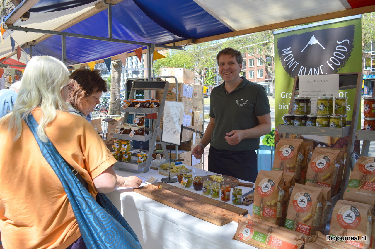Hans van der Velde was er bij namens Mont Blanc Foods. Men kon in deze kraam proeven van de biologische kaasbegeleiders.