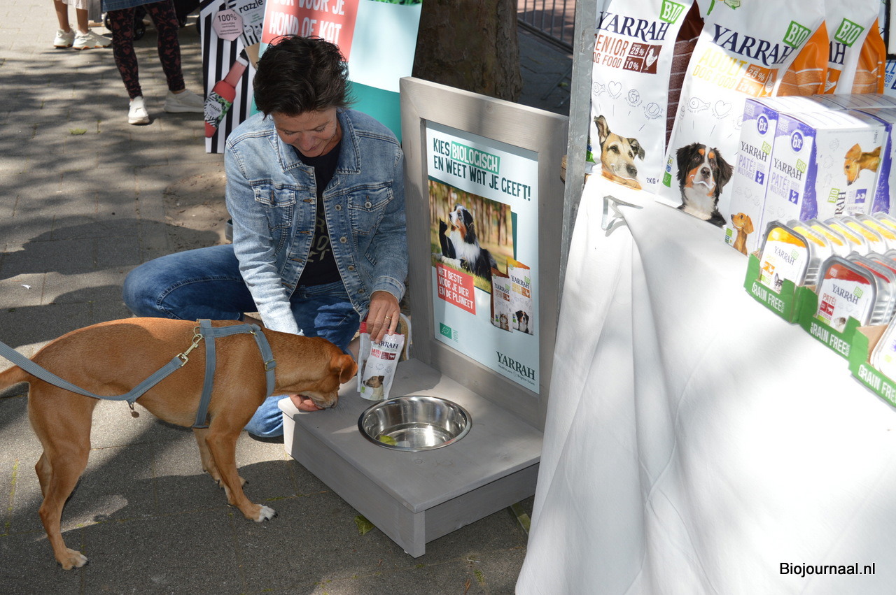 Hoe toepasselijk: Adriëtte Breemans snelde naar de voerbak om hondje Jara te laten proeven van een hondensnack van Yarrah Organic Petfood.