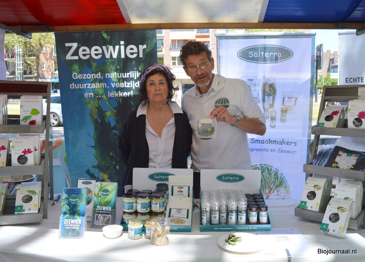 Marty van der Krogt en Kees Boender van Your Well. Kees toont de eerder dit jaar geïntroduceerde biologisch geteelde wakame uit Zeeland. "We zijn blij hier weer te kunnen staan. Er is veel belangstelling voor onze Salterra WakameNL."