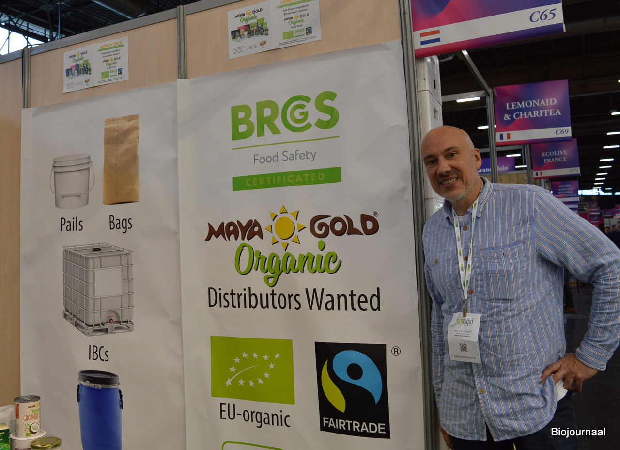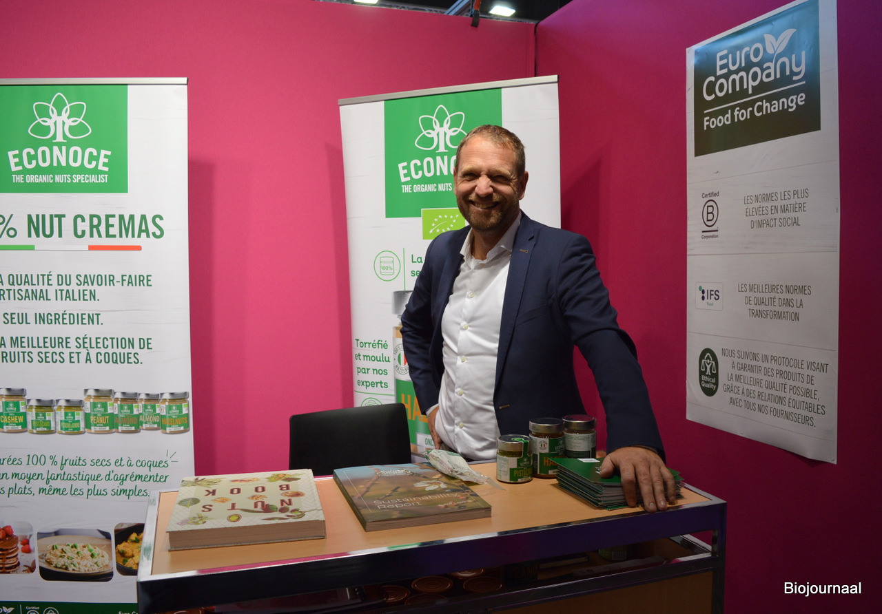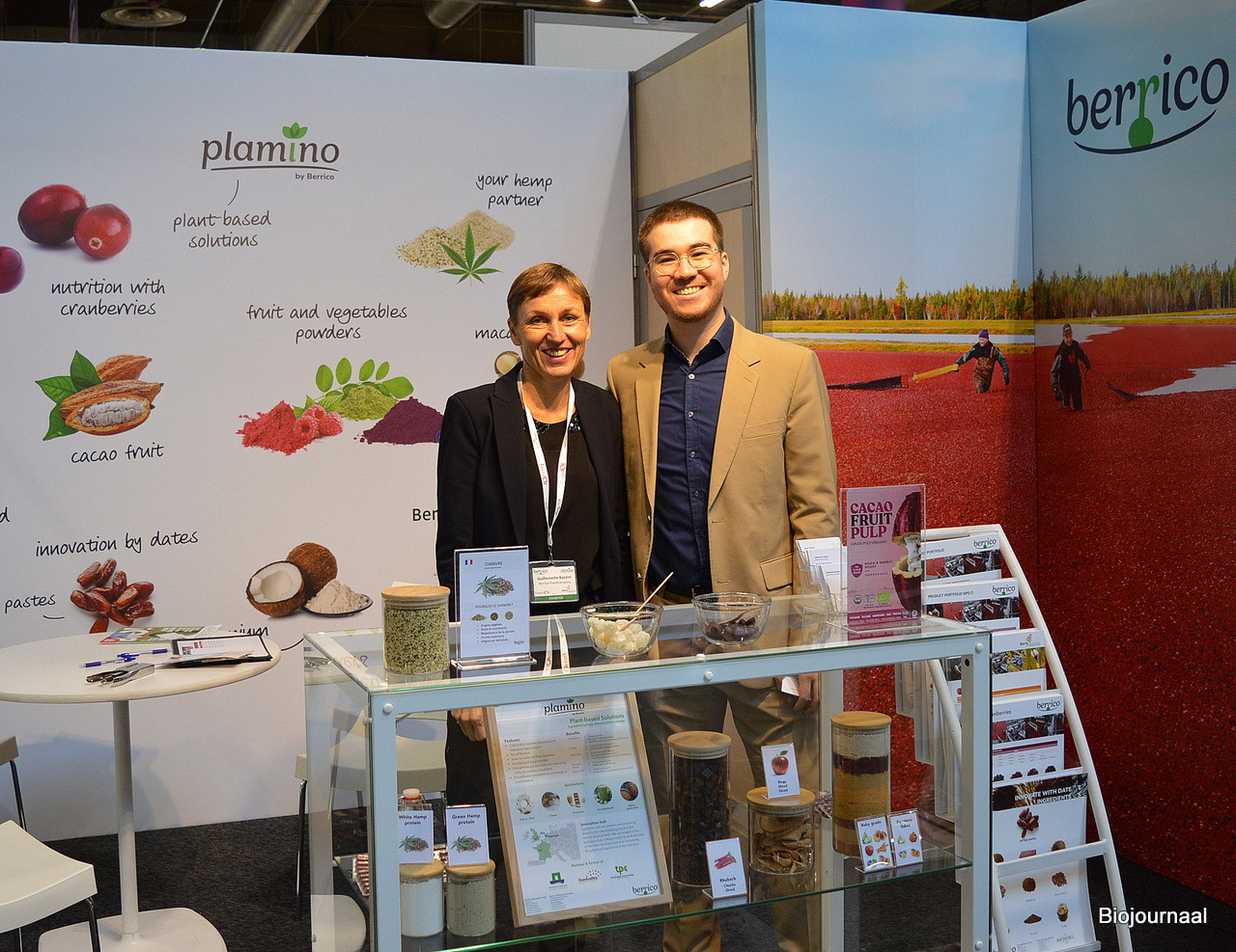 Bij DO IT Organic: Francoise Cardoen, Vincent Roumen en Camille Ferrero. Vincent woont in Montpellier en na zijn verhuizing leek het hem fijn om vanuit daar voor een Nederlands bedrijf te kunnen werken. Zo kwam hij bij DO IT terecht. "Dit is een erg leuke beurs om bestaande klanten te zien en nieuwe contacten te leggen. Vooral maandag zaten er best wat inkopers tussen de bezoekers", aldus Vincent. Agribio organiseerde die dag ook een bezoek van een groep 'food processors' aan onder meer de stand van DO IT.