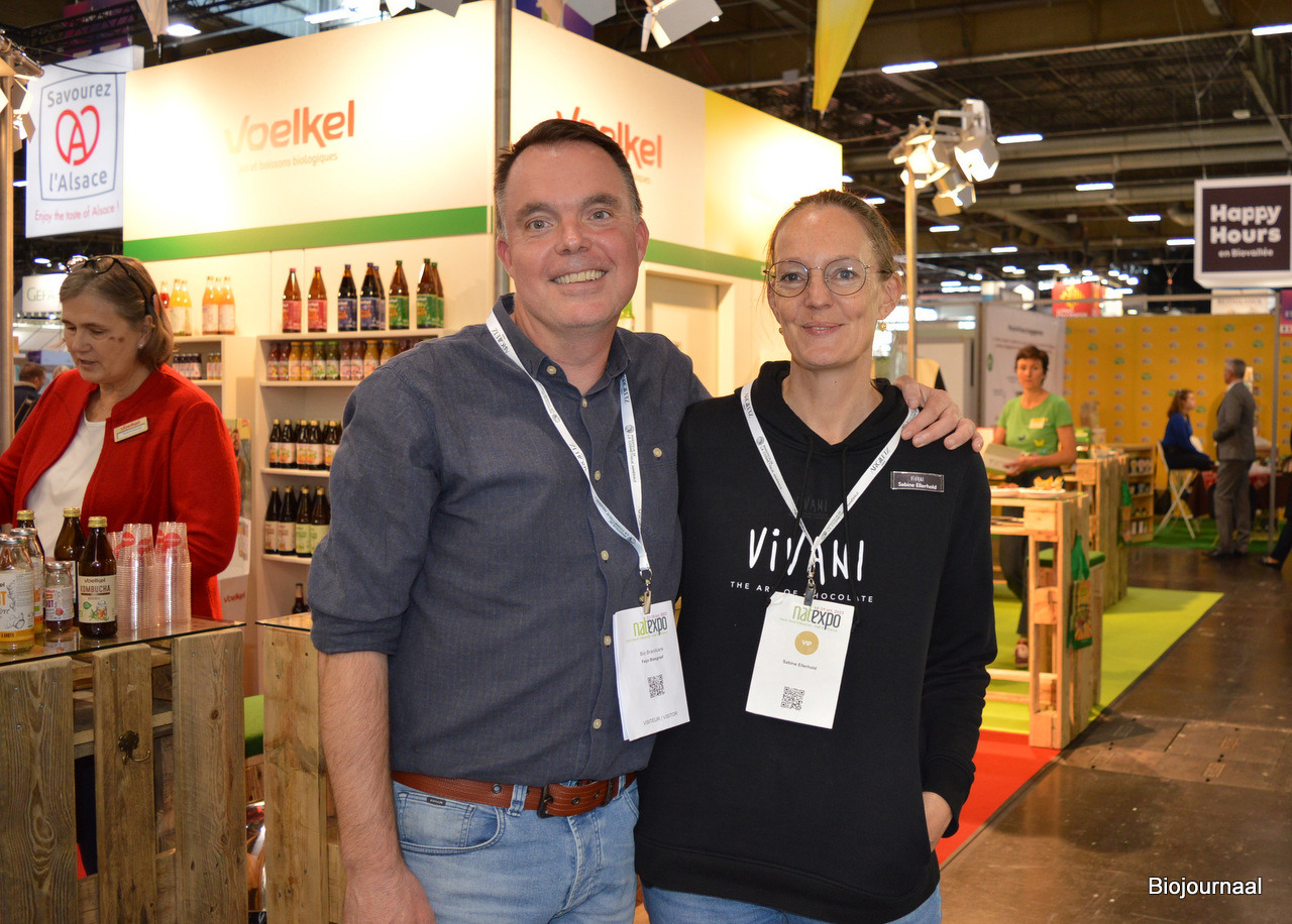 Feijo Blesgraaf (Bio Brandcare) bracht een bezoek aan de beurs en kwam Sabine Ellerhold van de Duitse chocoladeproducent EcoFinia tegen (Vivani en iChoc).
