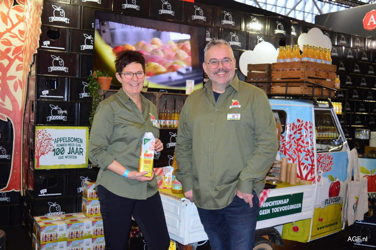Margo Baving en Cees-Jan de Bruijn van Flevosap. Hebben nu ook de appel granaatappelsap.