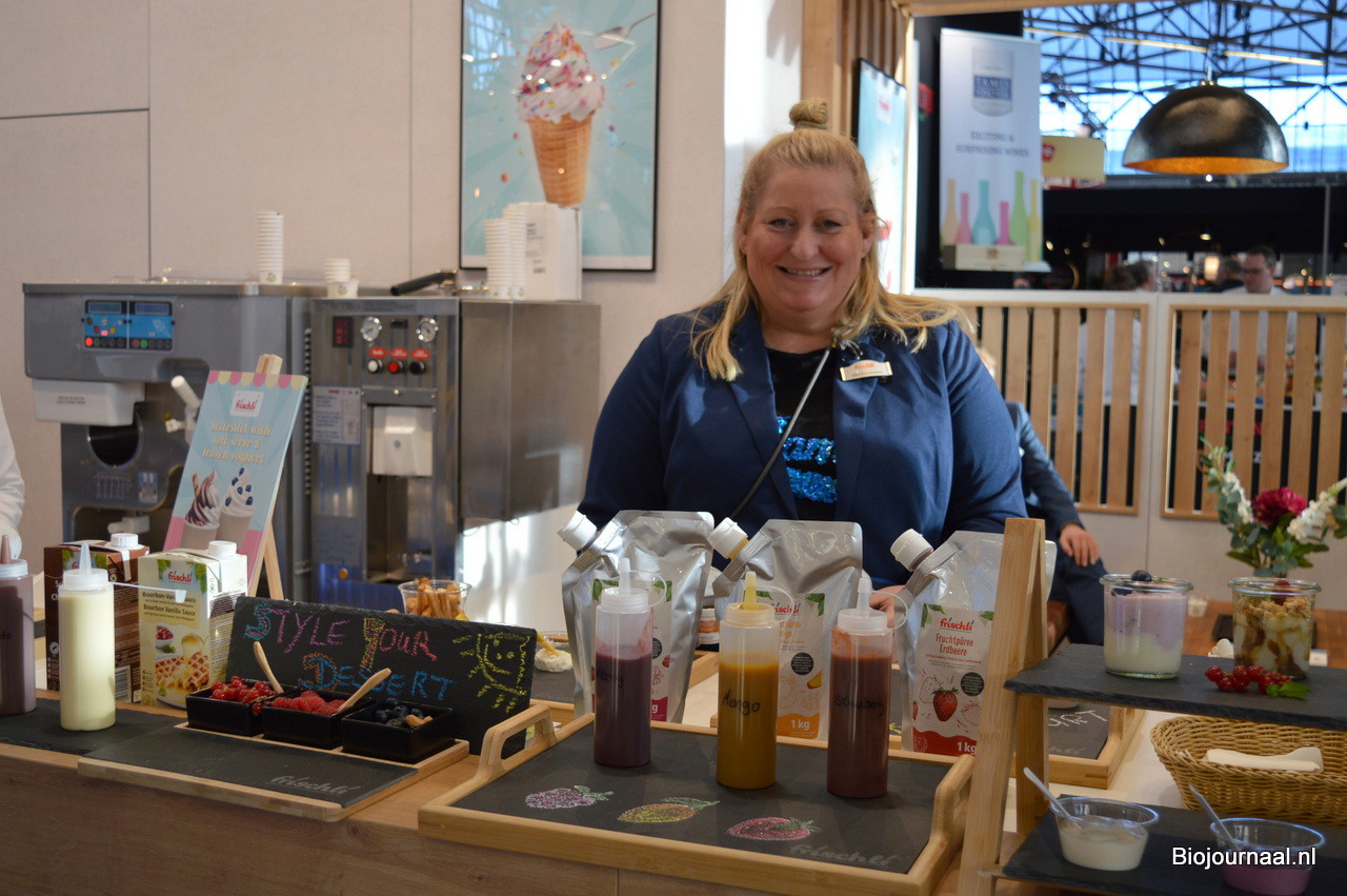 Inke Engelmann presenteerde de plantaardige bio-producten van het Duitse merk Frischli in de stand van Holland Foodz.