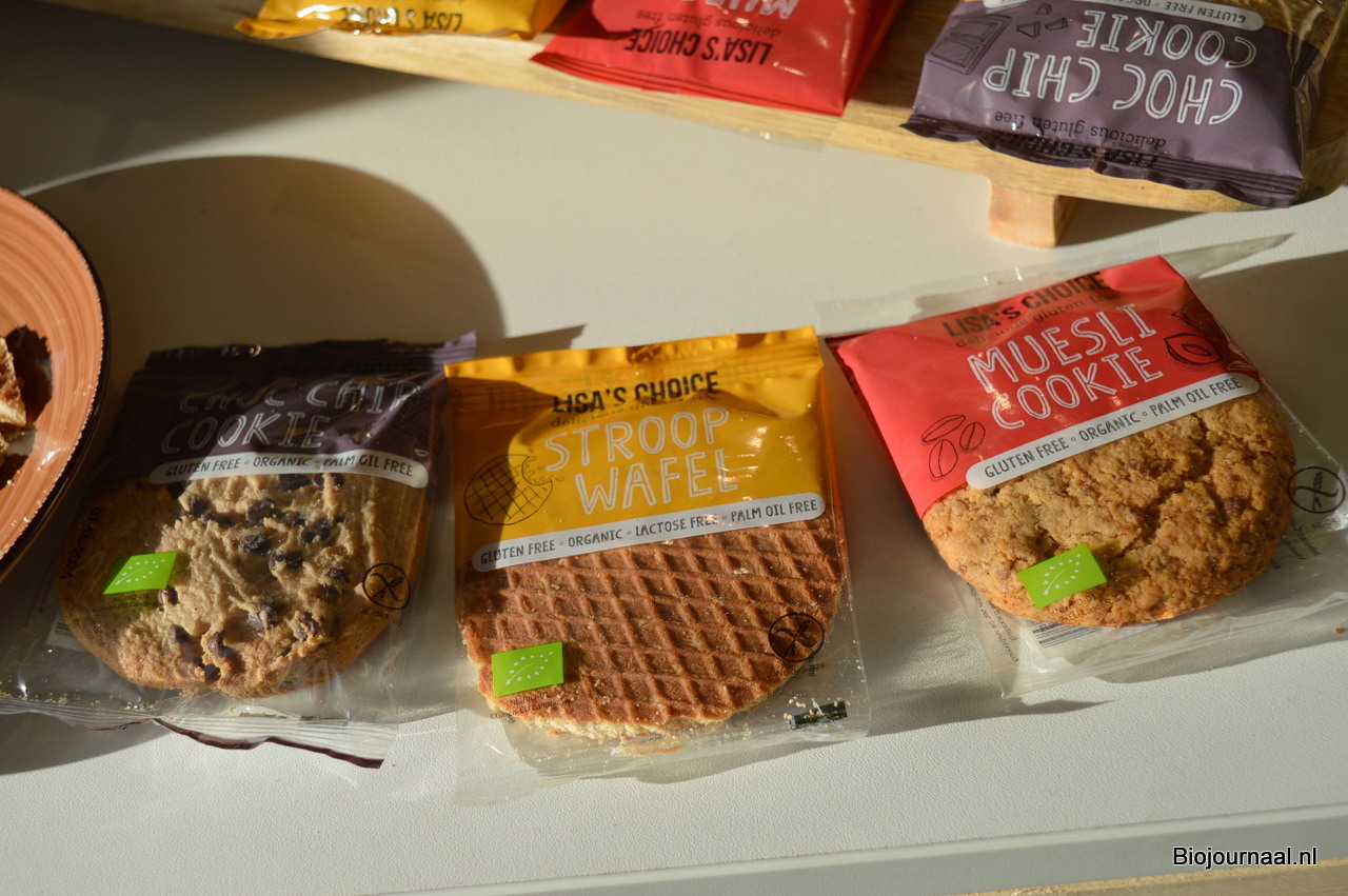 Daar kon men proeven van deze nieuwe per stuk verpakte biologische koekjes: choc chip cookie, stroopwafel en muesli cookie. Edith: "Ze zijn al verkrijgbaar bij Sligro, La Place en diverse outlets."