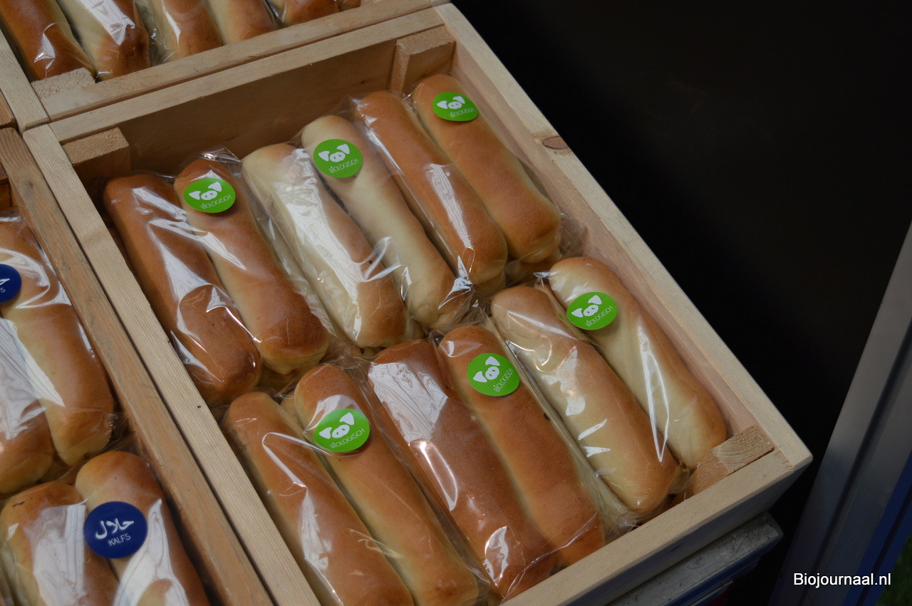 Het biologische worstenbroodje. Simone: "Dit broodje loopt best aardig."