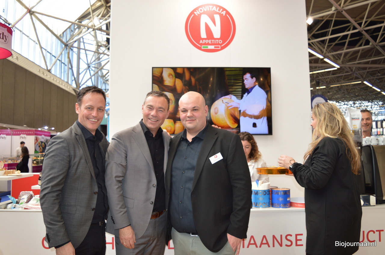 Ben Frequin, Arnoud Zuijdendorp en Bernardo Russo bij Novitalia. Van de 2000 producten in het aanbod is ongeveer 10% biologisch, denk aan meel en pasta.