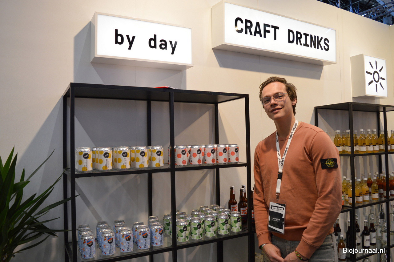 Mick Weeda met een deel van het bio-aanbod van Craft Drinks: ROY kombucha.