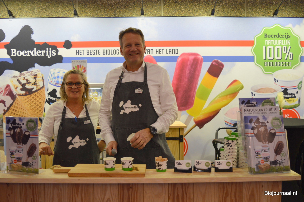 Andrea Boerlage en Gijs Hoefsloot in de stand van Boerderijs.