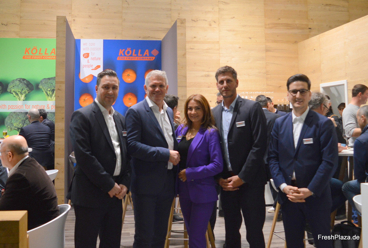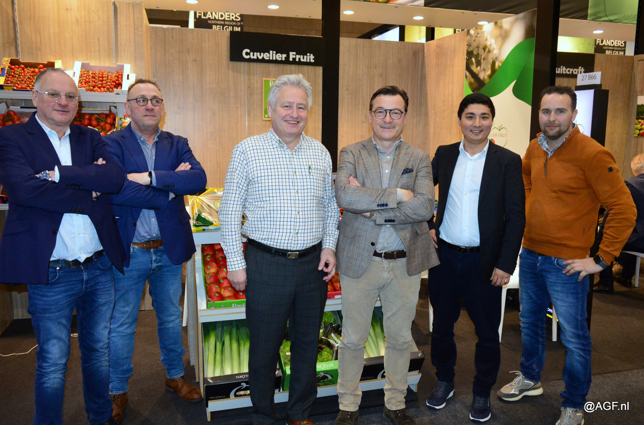 Raf Boussier, Leon Siborgs, Andre Francq, Yves Cuvelier, Hasan Kamalbayev en Gert- Jan van der Straeten van Cuvelier Fruit. Zij zijn dit jaar voor het eerst op de beurs.