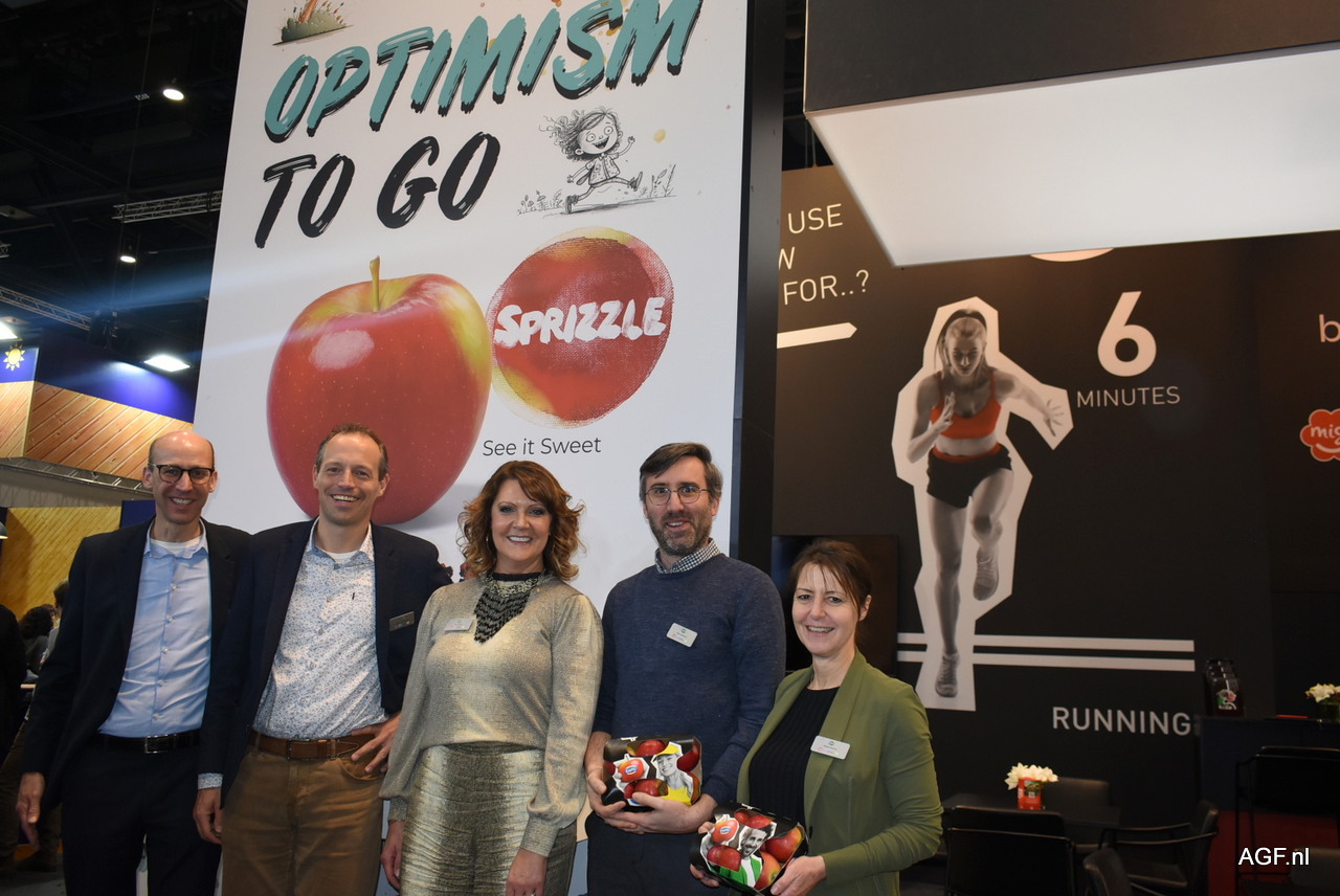 Het team van EFC meet haar Sprizzle- en Kanzi appelen, hier met Jan Willem Verloop, Martin van den Akker, Ilse Hayen, Hans Goossens en Esther Dworak