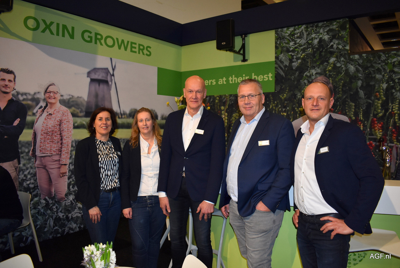 Het team van Oxin Growers met Jolanda Olsthoorn, Sandra van der Veer, Ton van Dalen, Jan Oosterom en Ruud den Boer