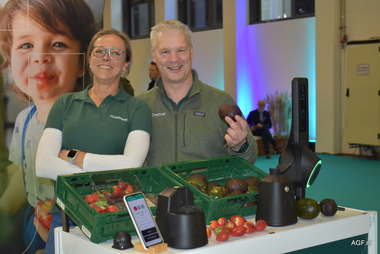 Mariska Hooijmans en Marco Snikkers van Onethird, er was veel interesse op de beurs naar de de scanner die nauwkeurig de houdbaarheid van fruit voorspelt.