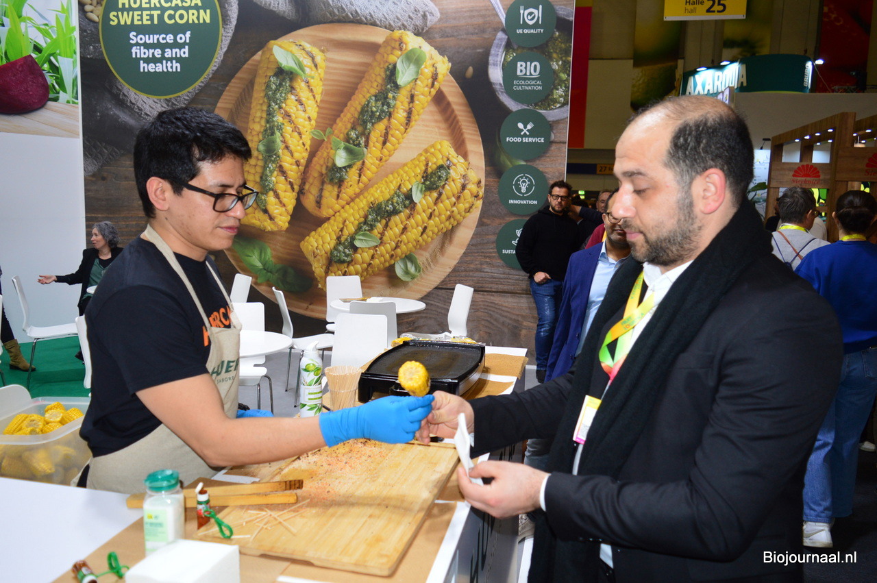 Een bezoeker liet het zich smaken de suikermais van Huercasa