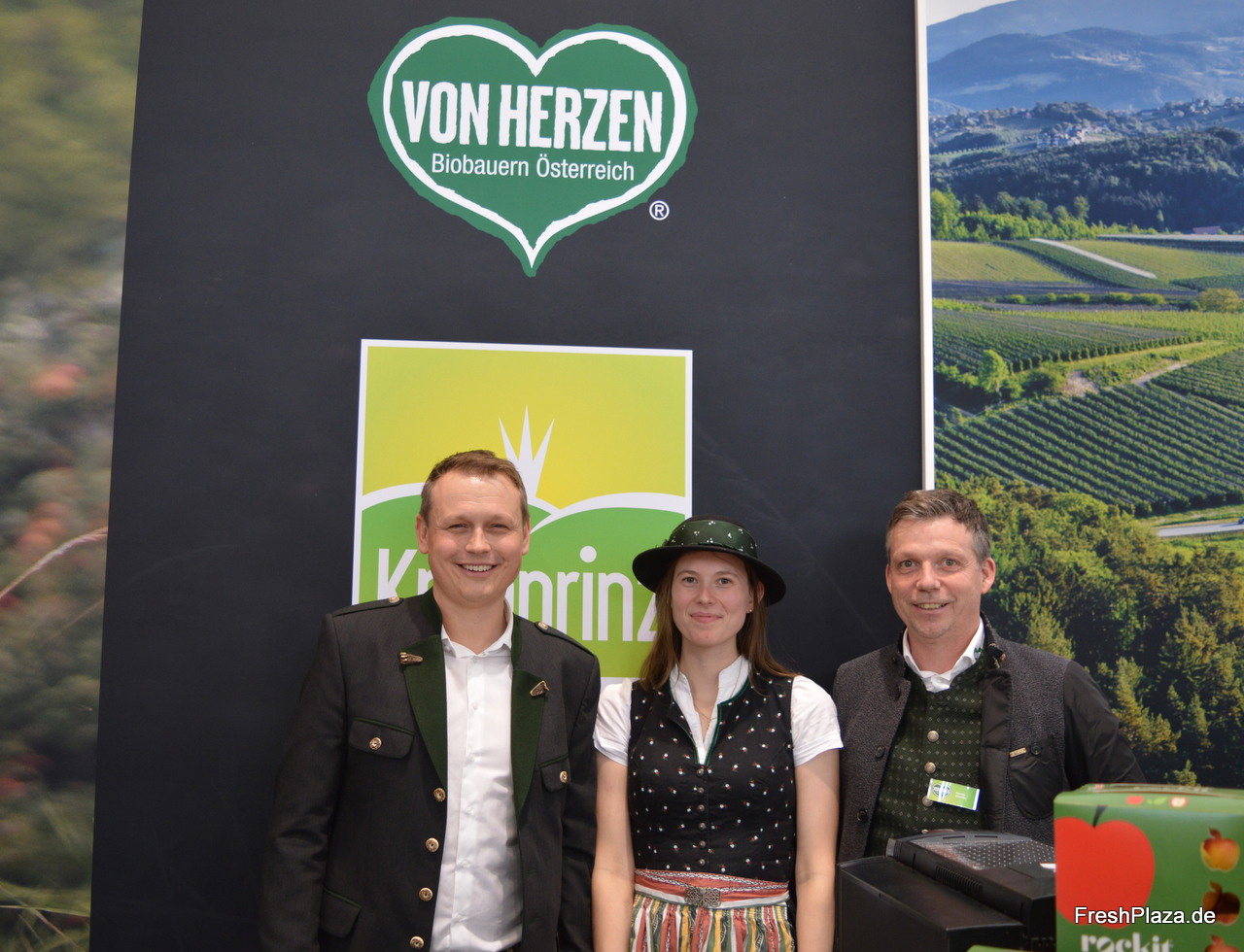 Het team van Von Herzen Bio presenteerde zich zoals gewoonlijk op de gezamenlijke stand van Stiermarken. Op de foto: Walter Wilfling en Hannes Schaffer met een collega.