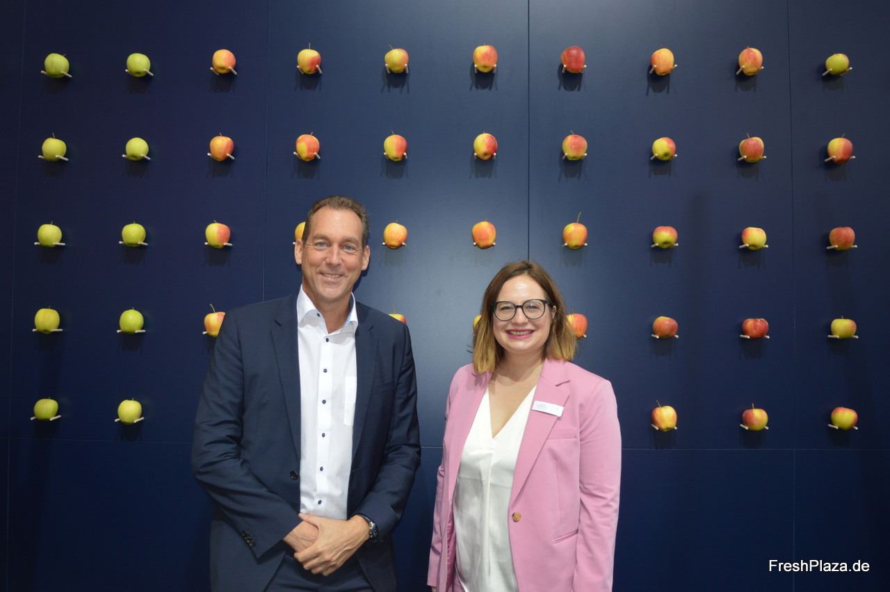De BayWa Group is een van de toonaangevende bedrijven in de wereldwijde fruithandel. Carolin Metzger (links) en Yannick Henßler (midden) waren onder andere beschikbaar voor een interview