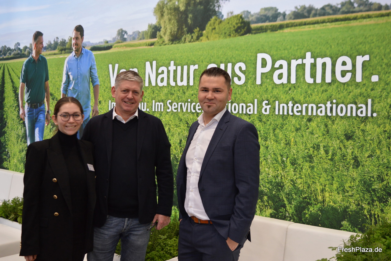 Robert Dreesen en zijn dochter en Artur Lammert van Dreesen Kräuter. Het bedrijf uit Bornheim presenteerde zich op de stand van Gemüsering.