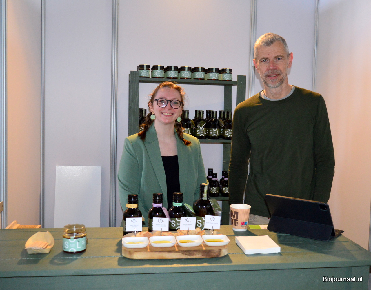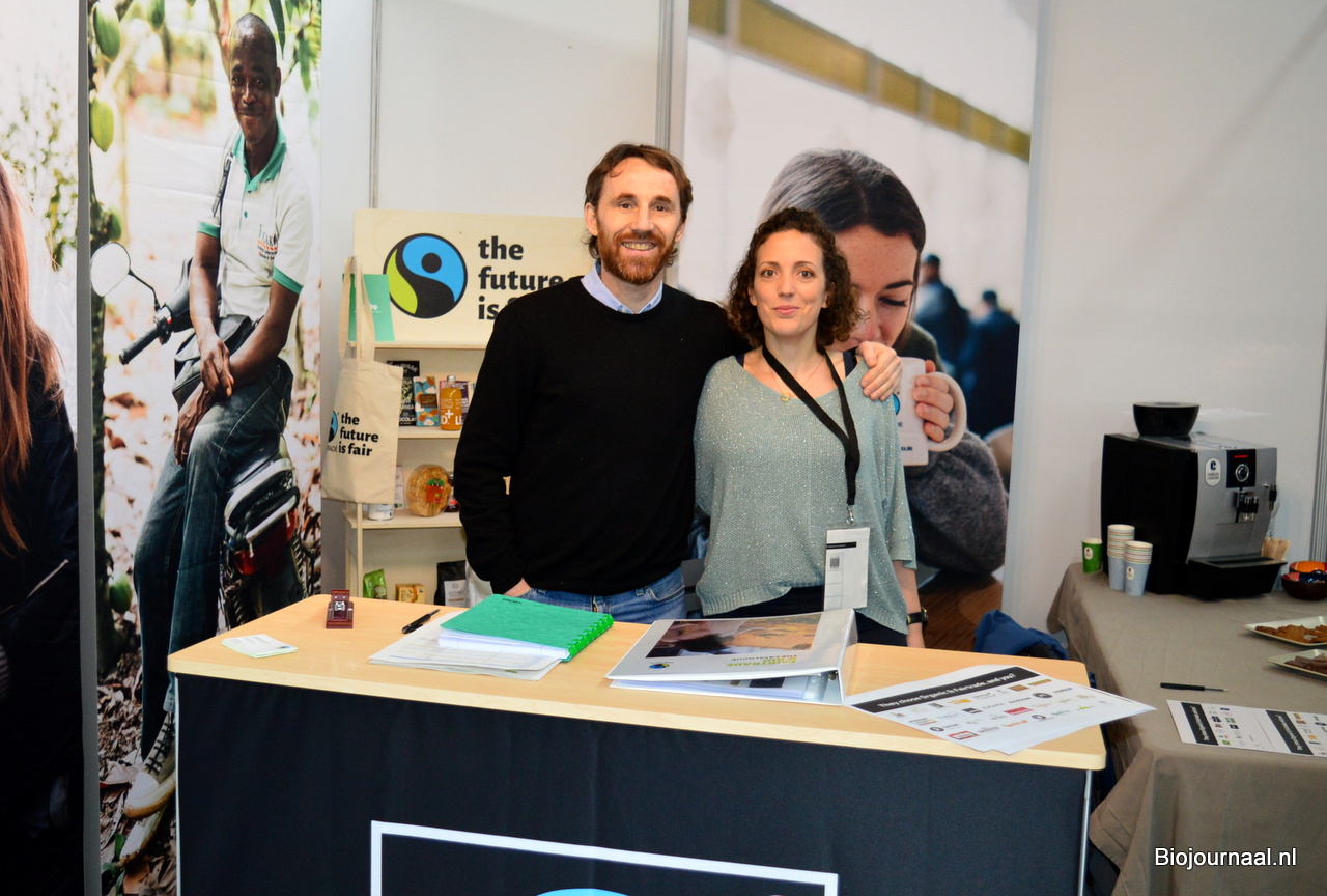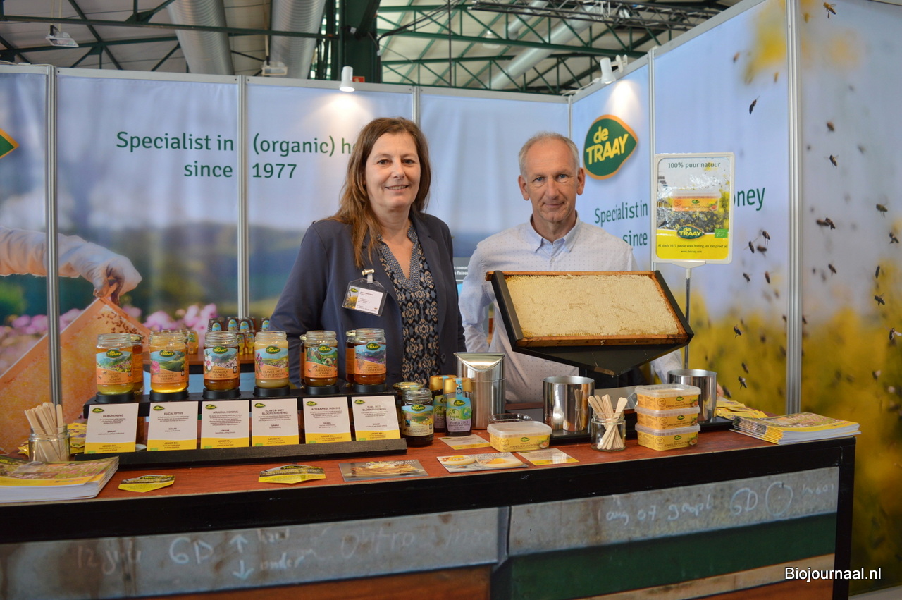 Sandy Vree en Herco Schoemaker bij IDorganics. Erg tevreden met de mooie plek, letterlijk in het midden van de hal.