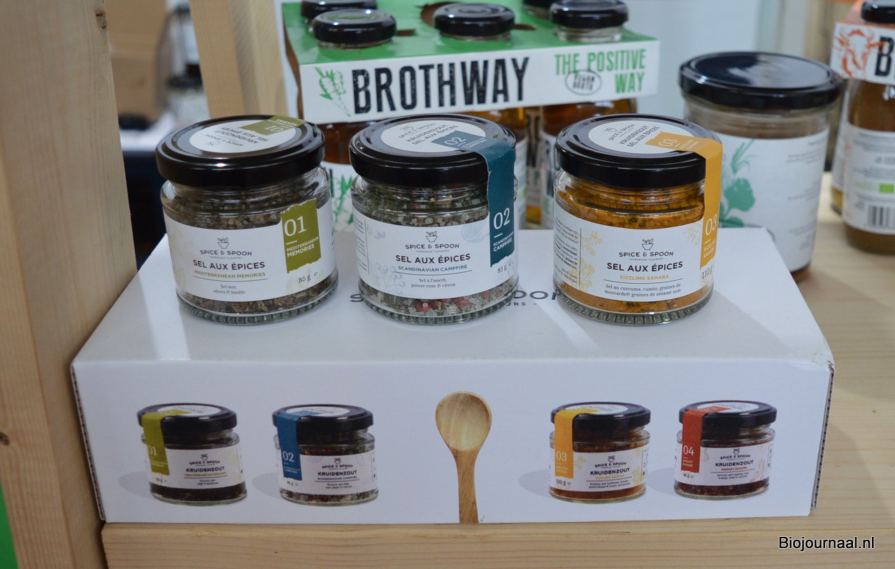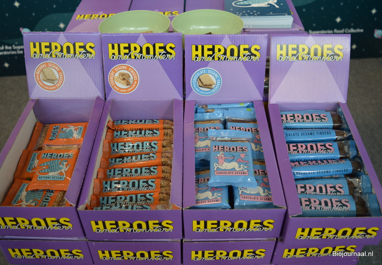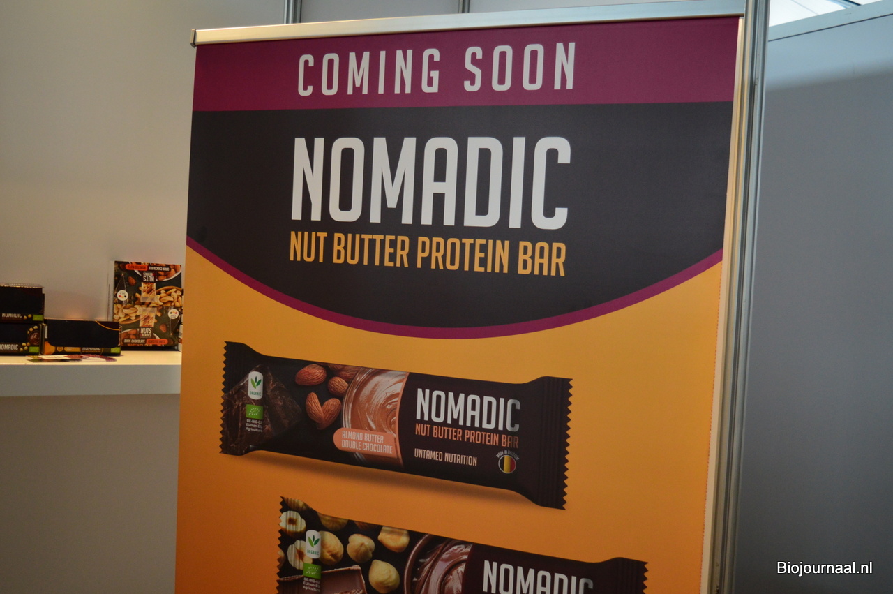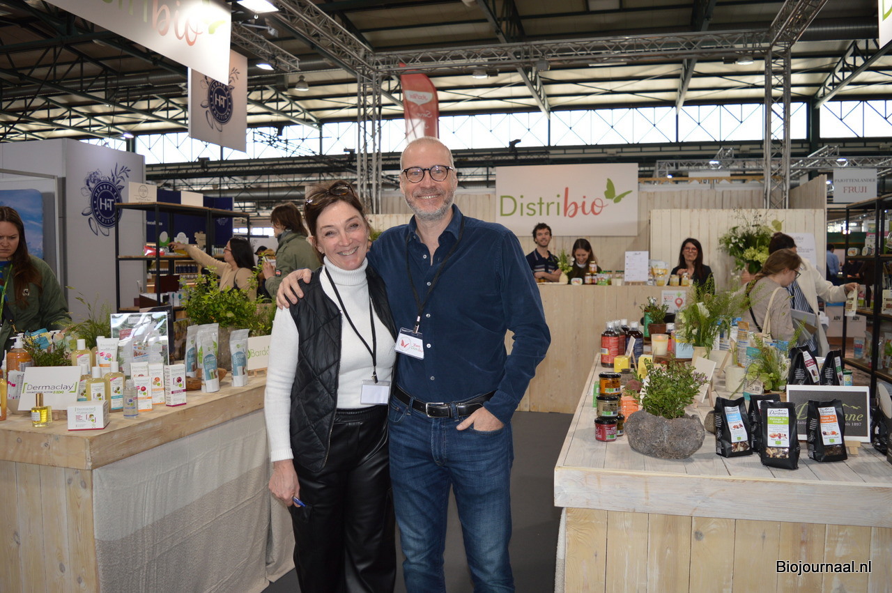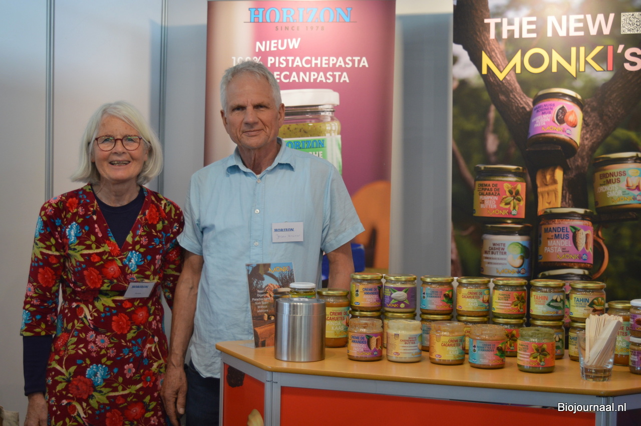 Alise en Jeroen Kramer zijn al vele jaren vertrouwde gezichten in de stand van Horizon Natuurvoeding. Ze zijn bezig aan de laatste reeks beurzen (hierna volgen nog de regionale beurzen in Duitsland). Zij toonden onder meer de nieuwe look van Monki. En men kon proeven van de pistachepasta en pecanpasta van Horizon.