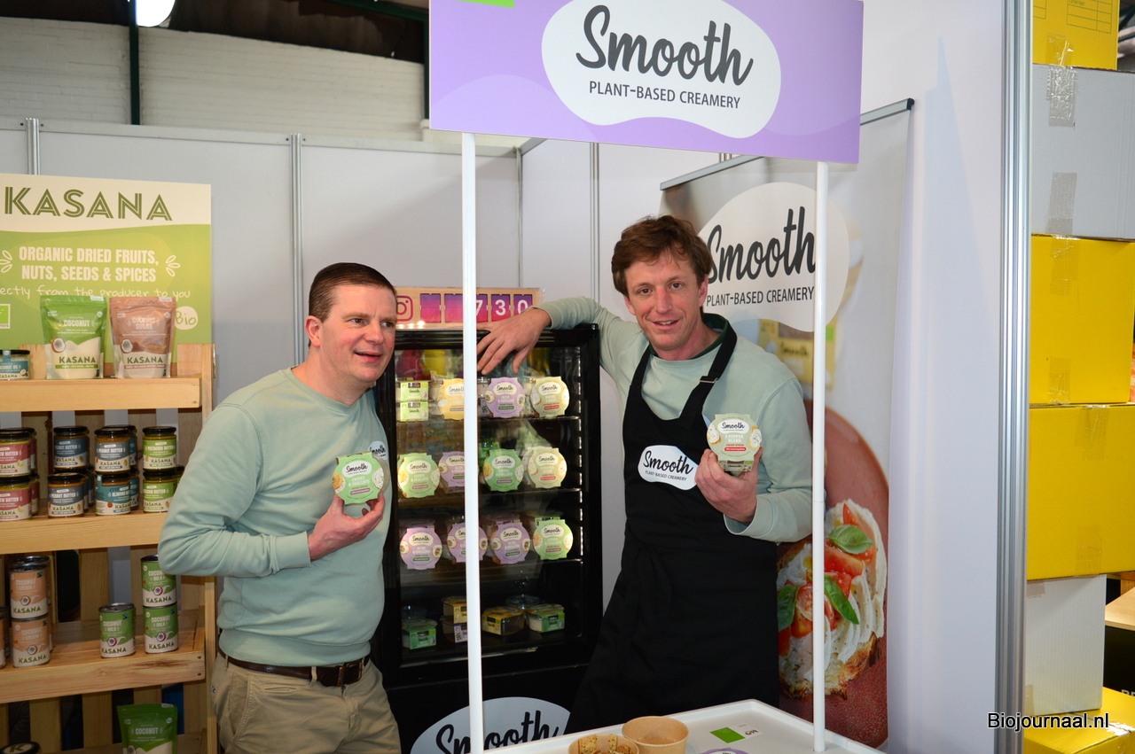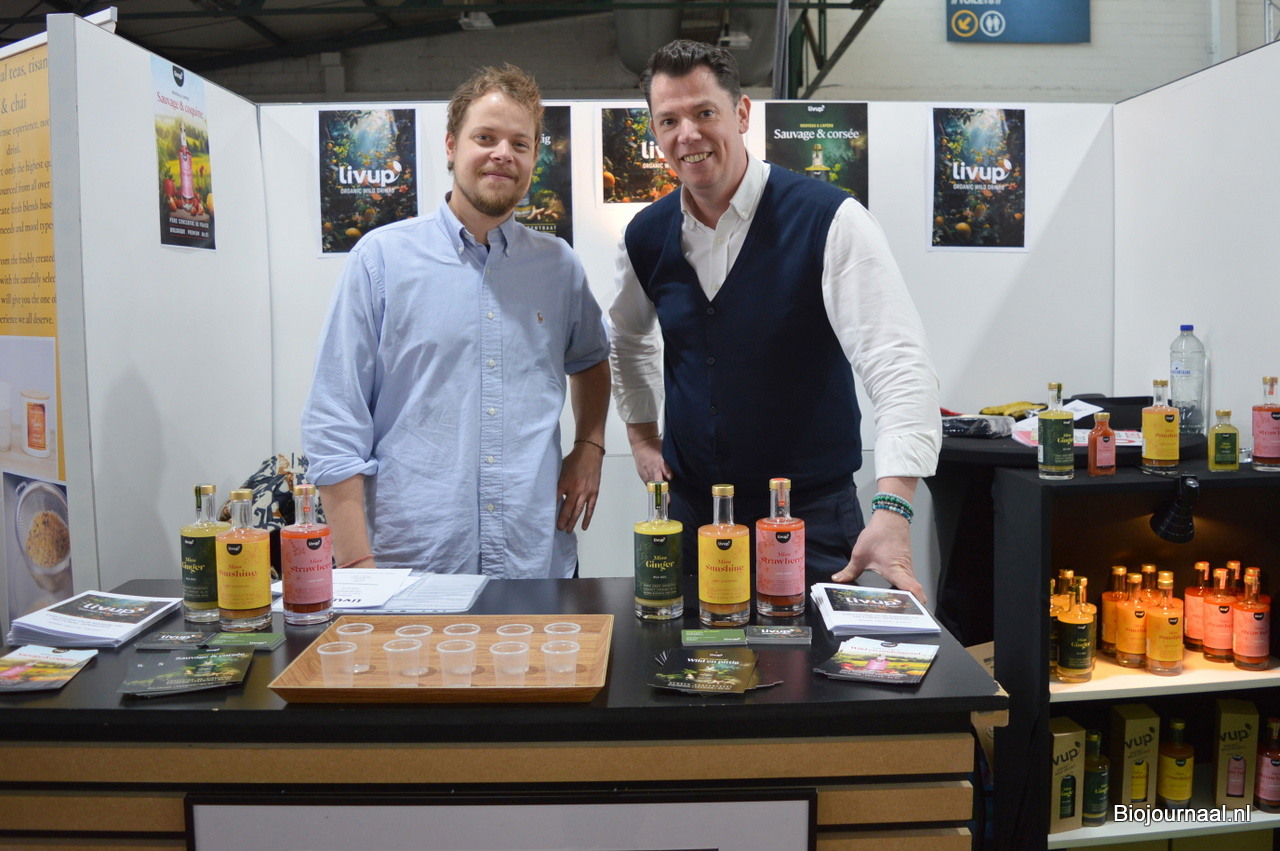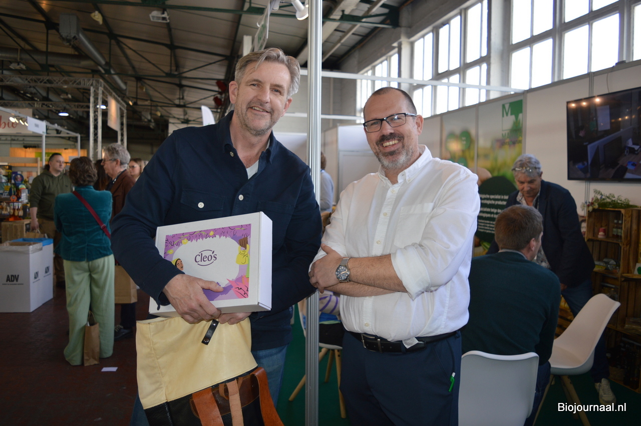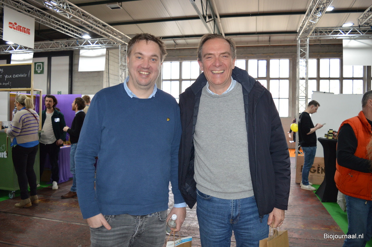 Ronald Bakker bracht namens Organic Flavour Company een bezoek aan de beurs. Rechts Johan de Blieck van Marma.