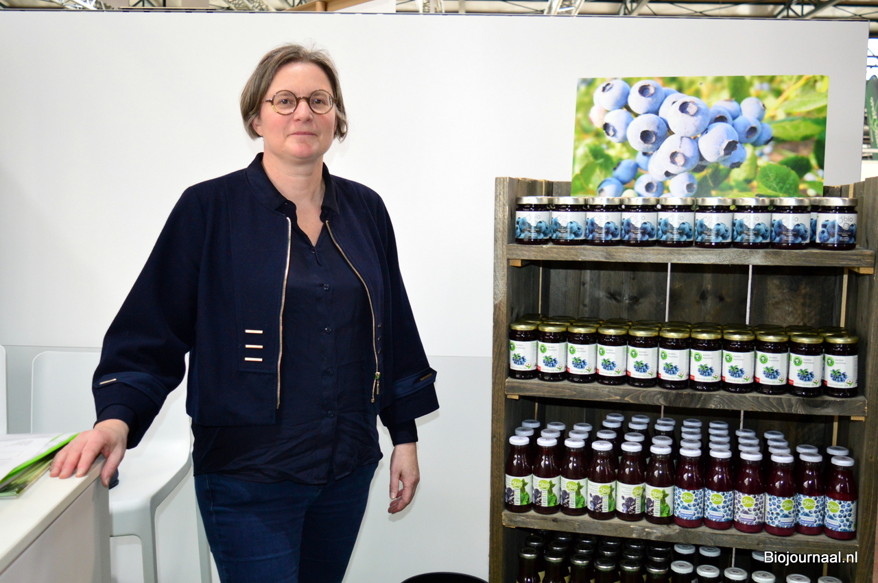 Isabel Decrock van O'Bio. Zijn bezig met een rebranding van hun verschillende producten op basis van blauwe bessen.