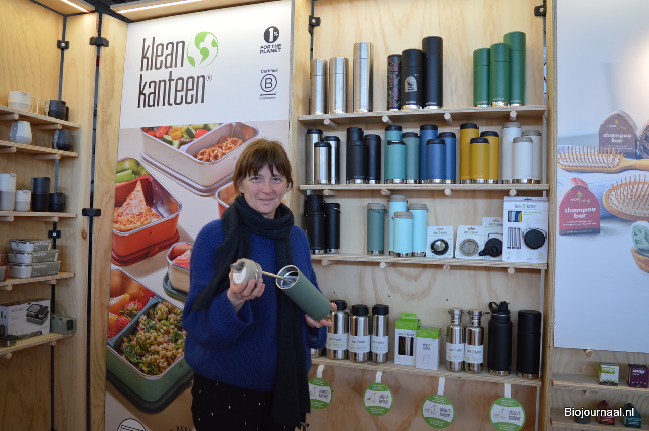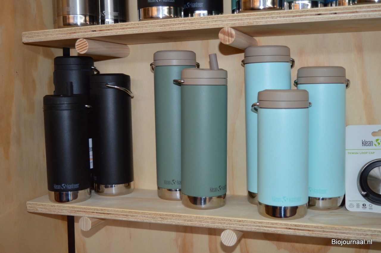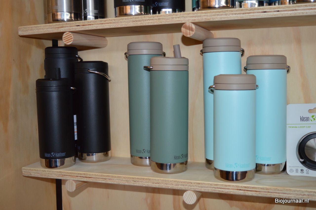 Bieke Vanduffel toonde bij Elements niet alleen de nieuwe 'Rise Lunch Boxen' van Klean Kanteen. Een andere nieuwkomer is deze thermosfles voorzien van een dop met een ingebouwd rietje.