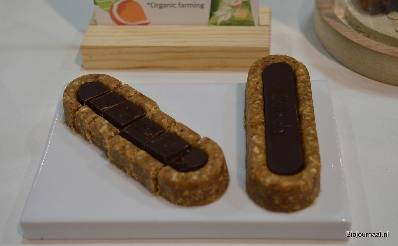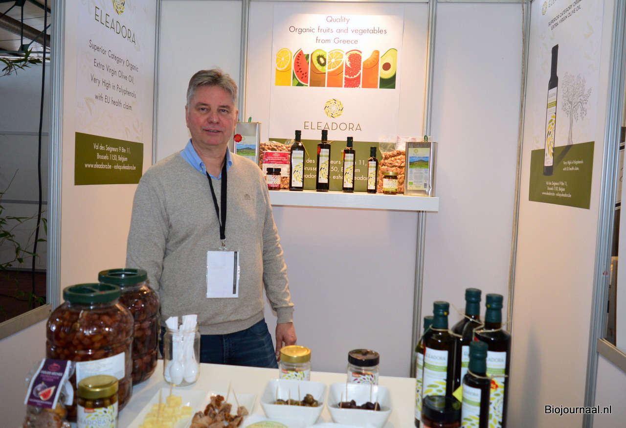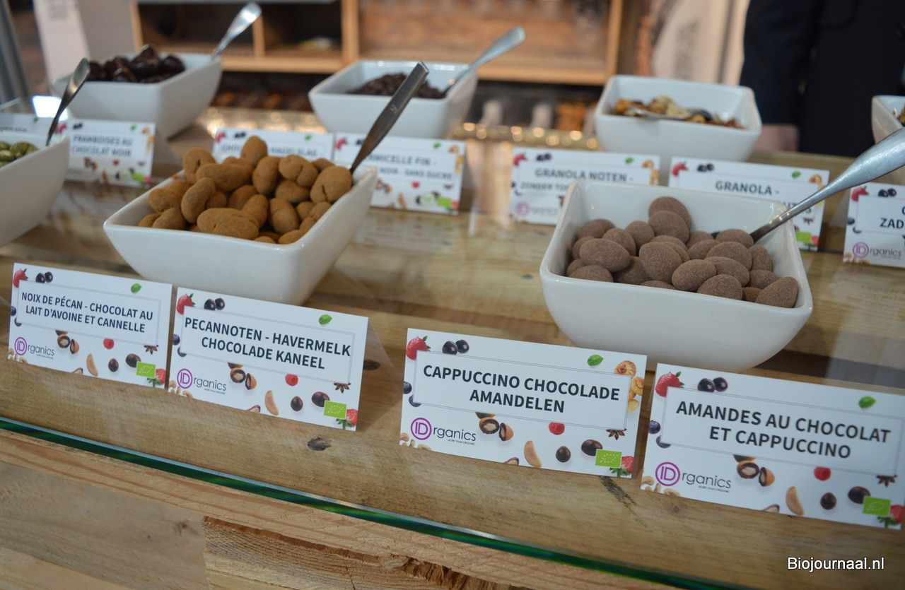 Hans Apontoweil van Fris Gedroogd Fruit, met naast hem de biologische lijn van Lilifruit. Ook schonk hij aandacht aan de proteïnechips van Madal Bal.