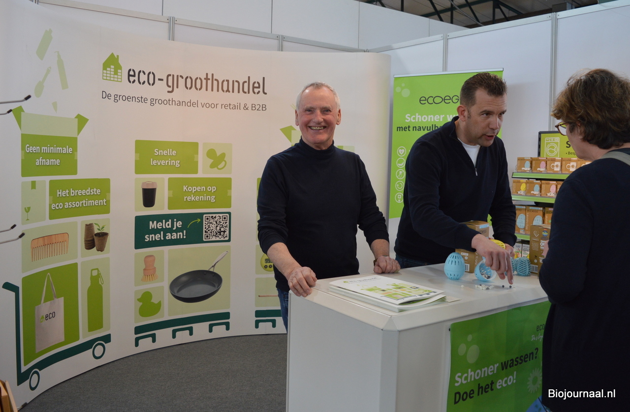 Rob Bos en Rogier Jongman vertelden de bezoekers over alle mogelijkheden die Eco-Groothandel biedt.