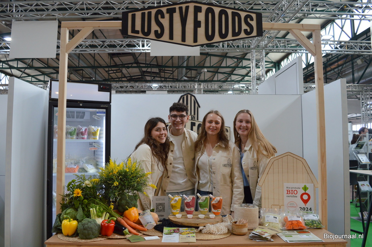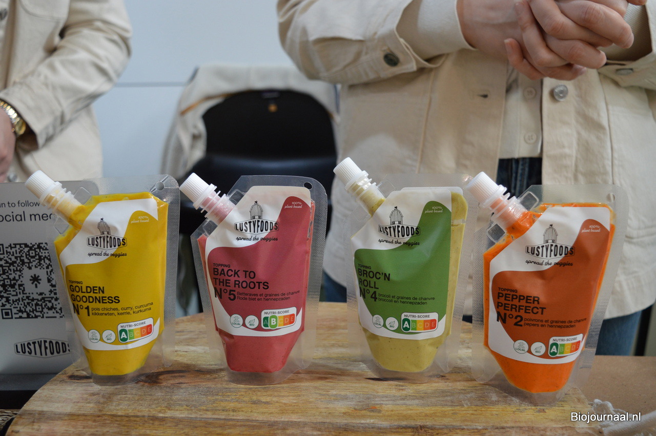 Derde van links is Lilou Cajot, oprichter van LustyFoods. Zij heeft vijf verse biologische sauzen op basis van groenten en hennepzaad ontwikkeld.