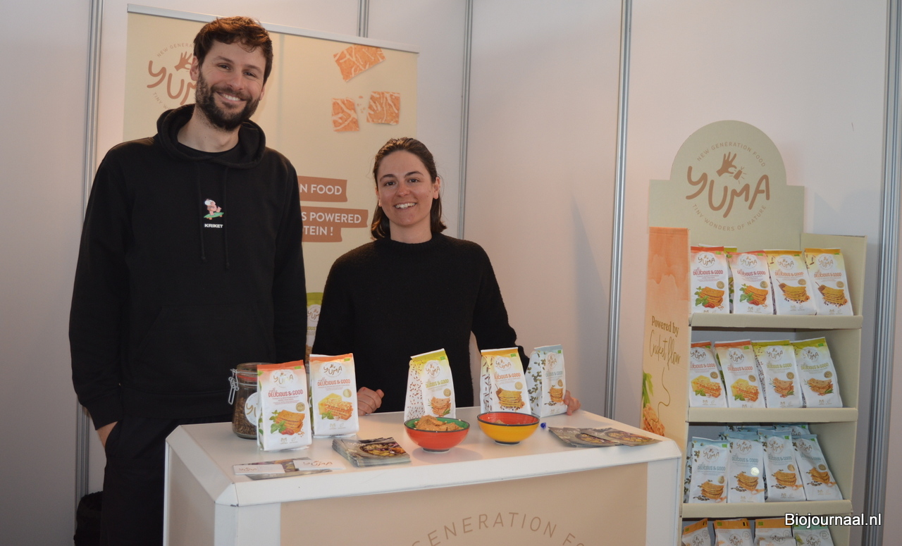 Michiel van Meervenne van Kriket met Livia Durazzo van Yuma. De biologische crackers van Yuma bevatten krekeleiwit.