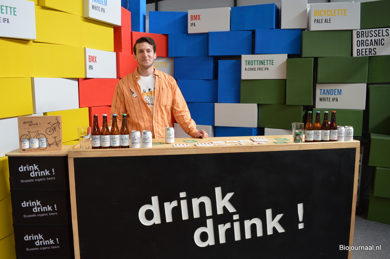 Pierre Colon bij de Brusselse biologische bierbrouwerij 'drinkdrink!'. Zij introduceren elke maand een tijdelijk biertje.