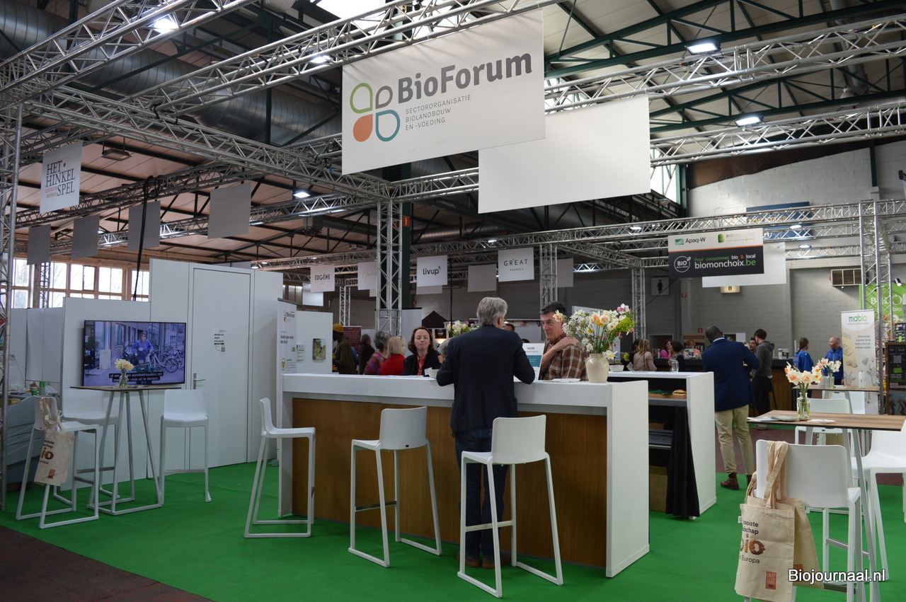 In de groepsstand van BioForum stonden allerlei Vlaamse bio-producenten.