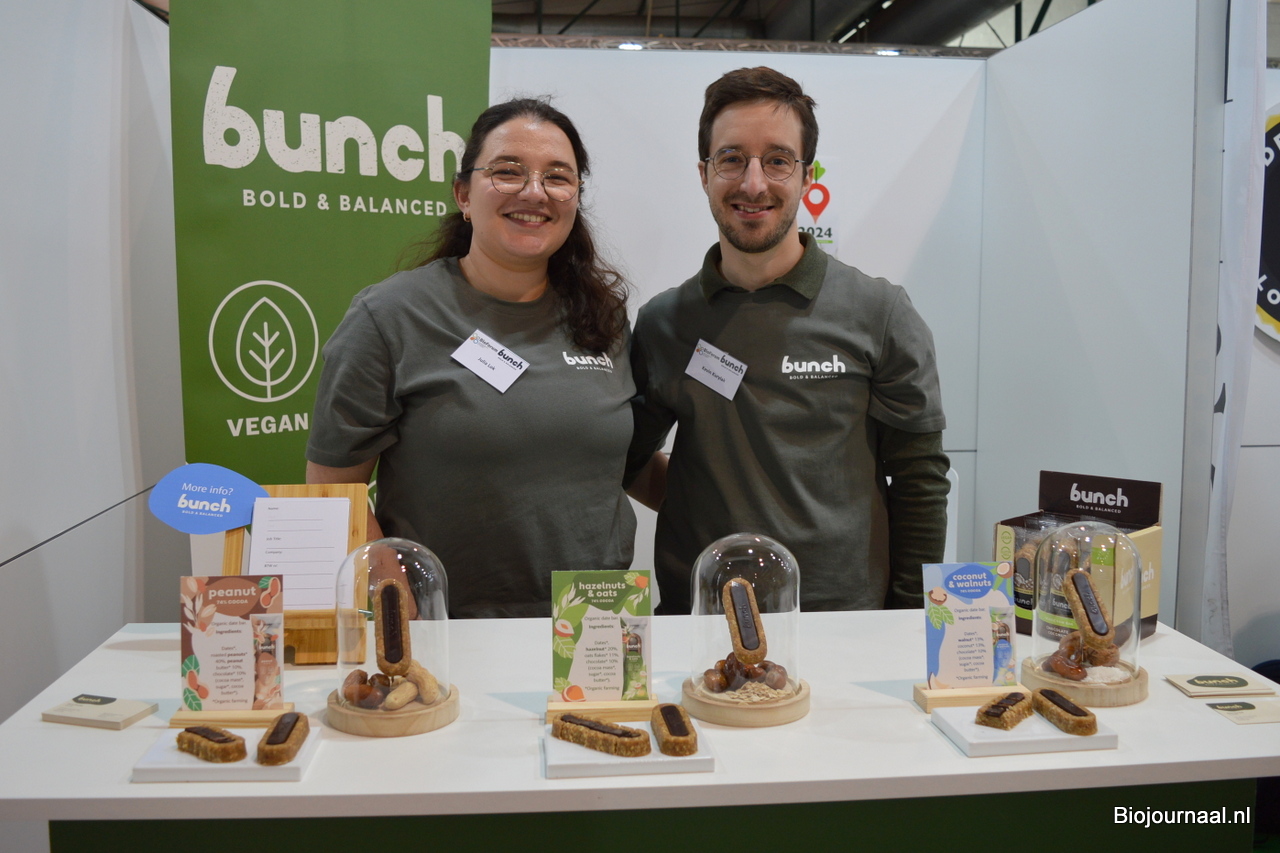Bunch is een raw bar op basis van dadels, nootjes en chocolade (70% cacao). Op de foto: Julia Lok en Kevin Kurylak.