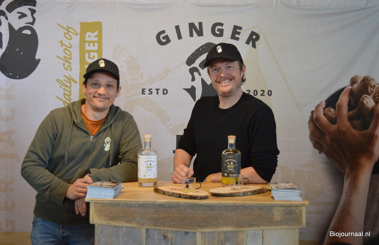 Proeven van Ginger Jack's gemberdrankjes kon bij Frederic Bodson en Jan Verhoeven.