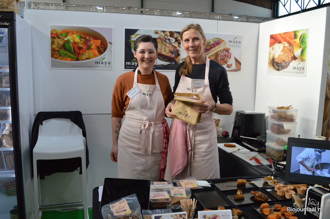 Emese Perduk en Willy Oldenhave bij Maya Seitan. Nieuw zijn gehakt, mochi en tempeh.