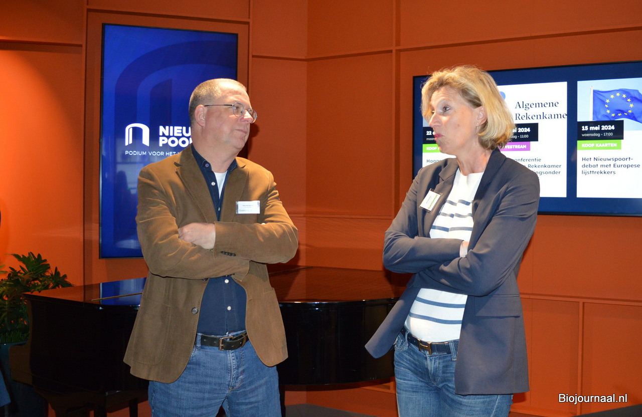 Pipie Smits van Oyen, voorzitter Biohuis, in gesprek met Harm Holman van NSC.