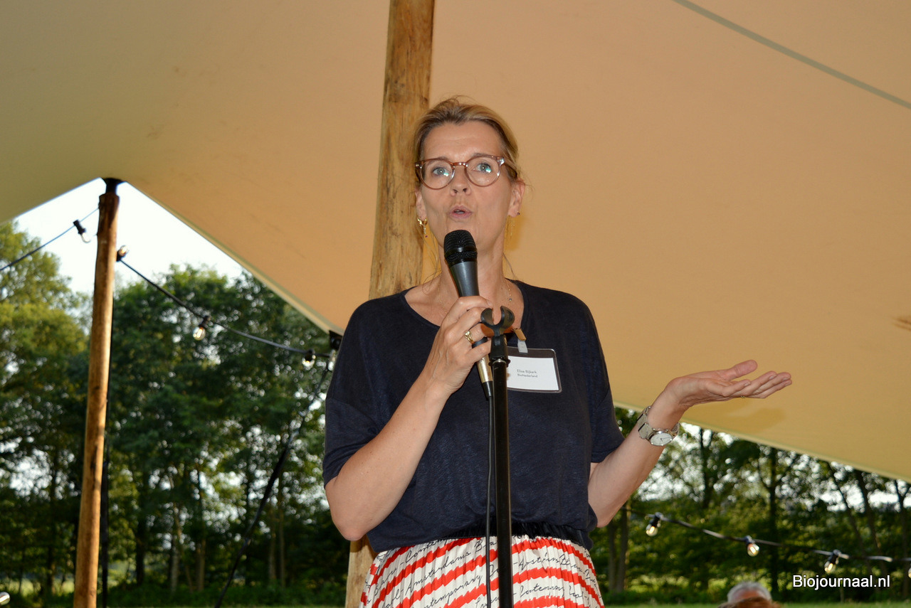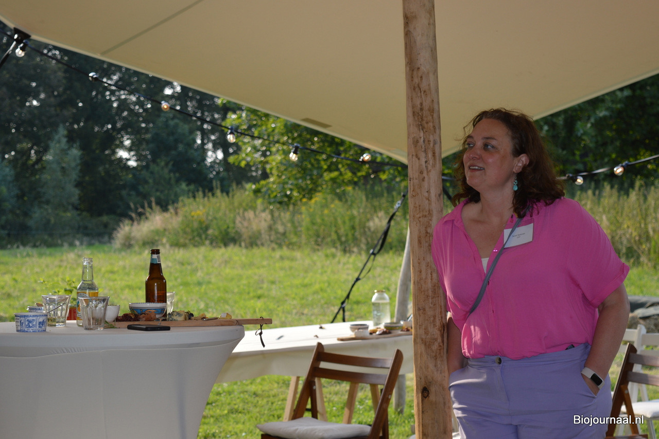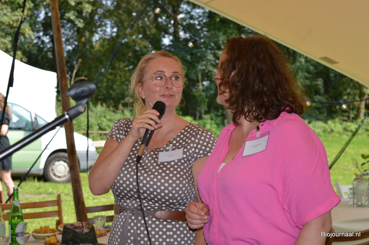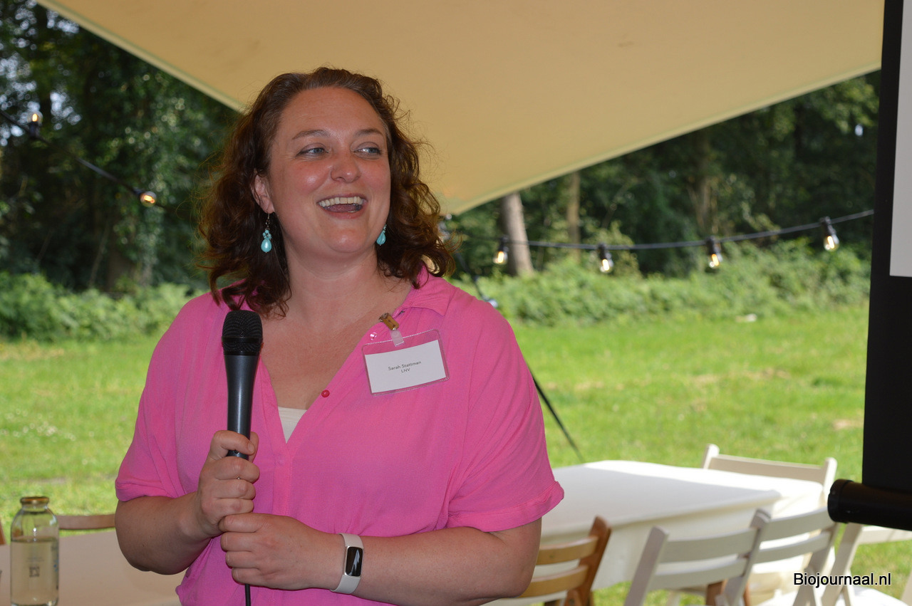 Ook Biojournaal-redacteur Lenneke Pors-Schot werd naar voren geroepen en bedankt voor alle verslagen die ze gemaakt heeft van de BioBorrels in de afgelopen jaren.