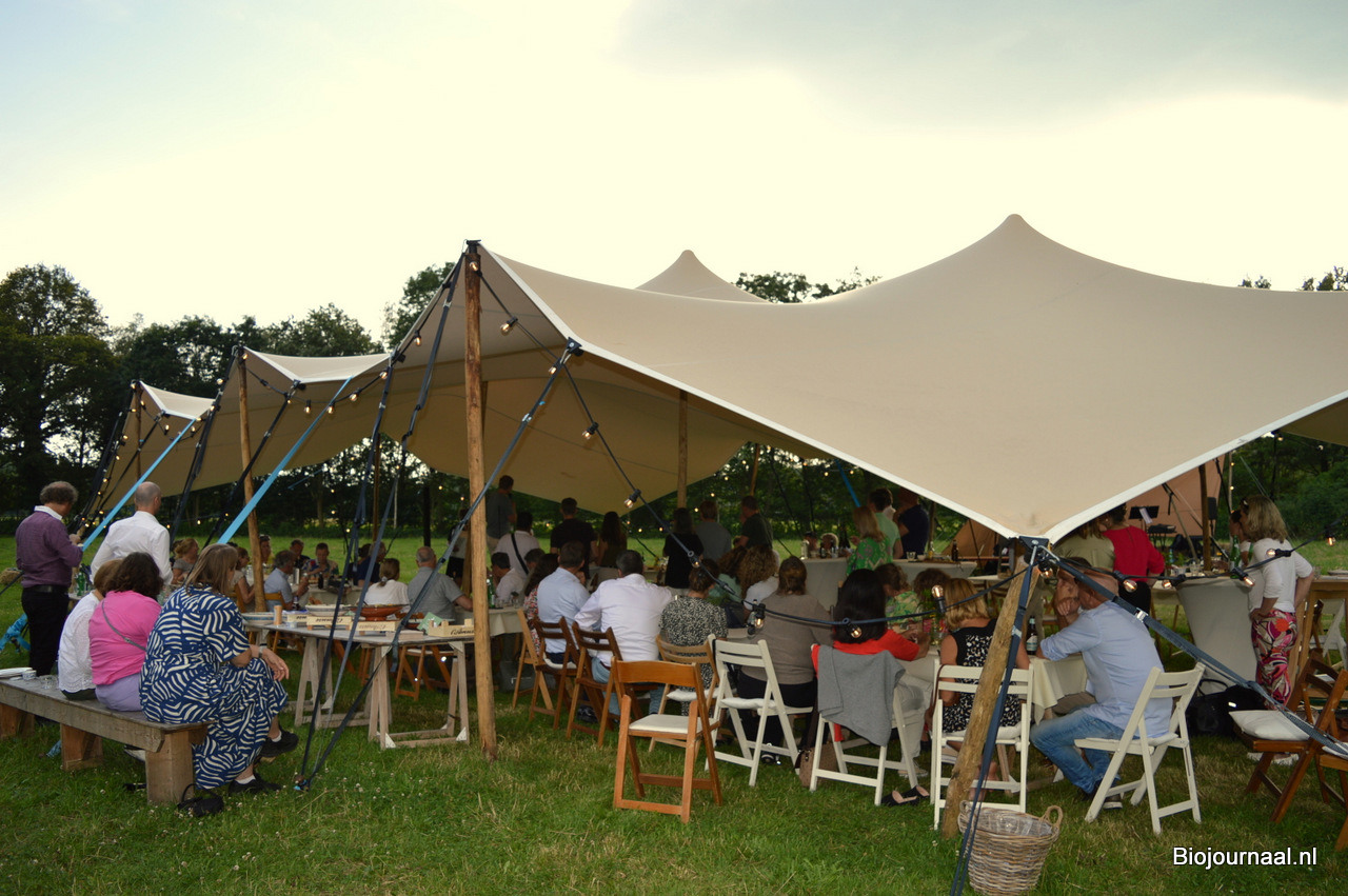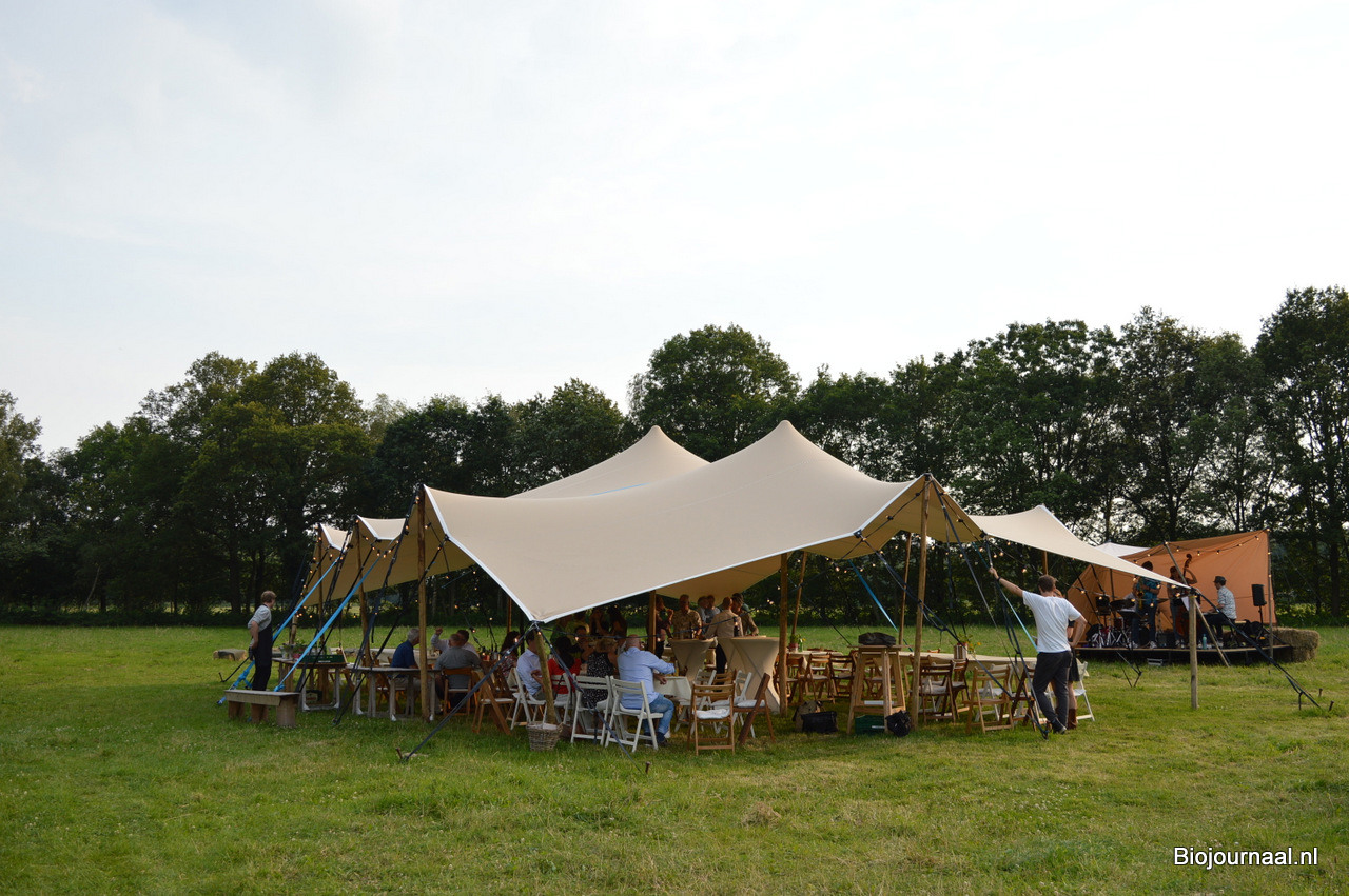 De grote tent in het open veld zorgde voor een sfeervol decor.