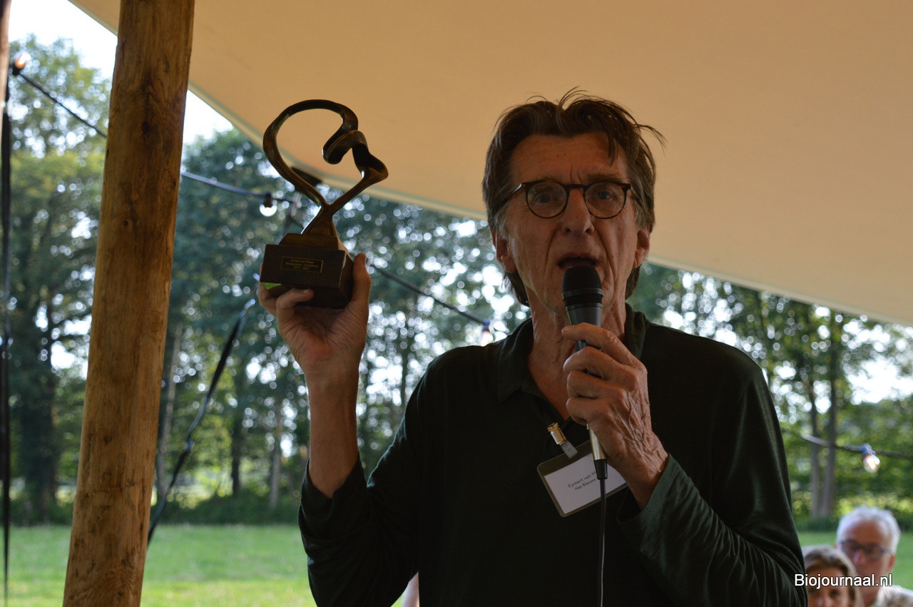 De stichting nam ook officieel afscheid van bestuurslid en mede-oprichter van de BioBorrel, Eymert van Manen. Dit beeldje staat voor 'levensloop'.