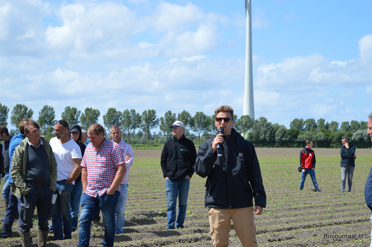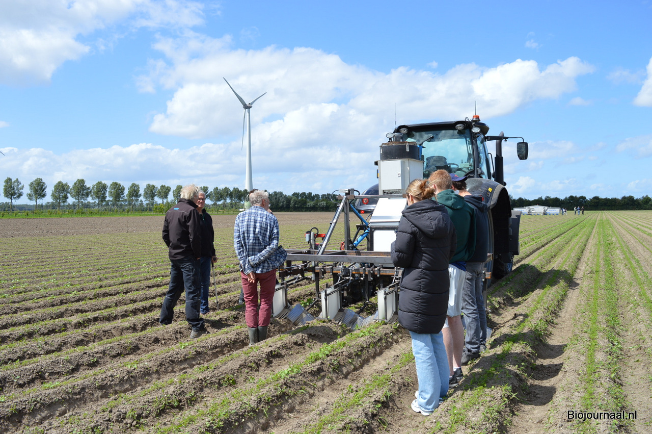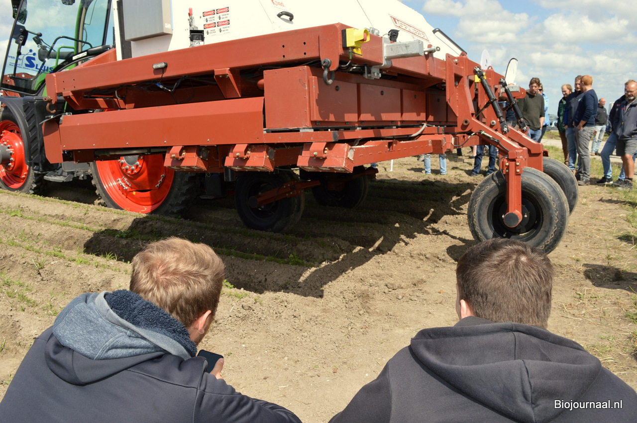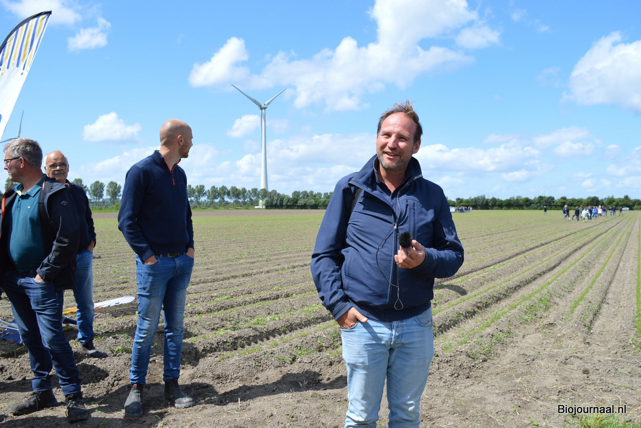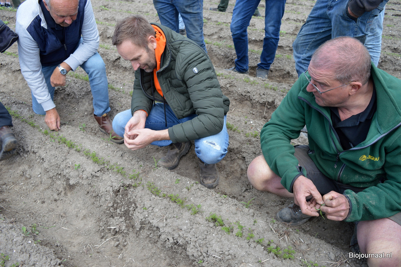 "Het is niet eenvoudig om al deze machines bij elkaar te krijgen. Ik ben heel blij dat alle leveranciers er zijn. Er zijn er nog niet zoveel in de praktijk. De ontwikkelingen hierin zijn de laatste drie jaar in een stroomversnelling geraakt. Dit demoveld met jonge peen is expres laat gezaaid."