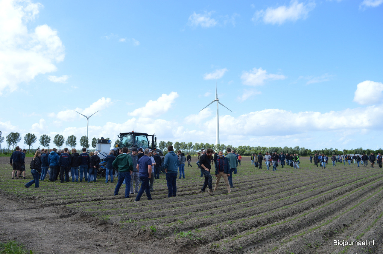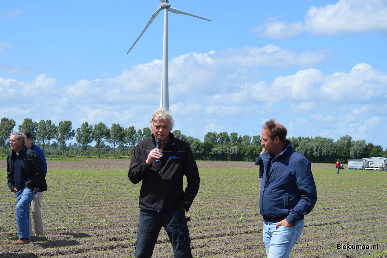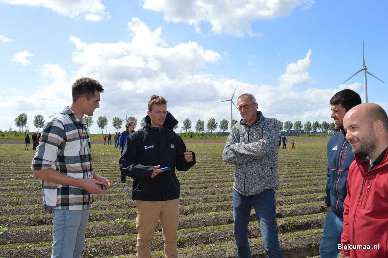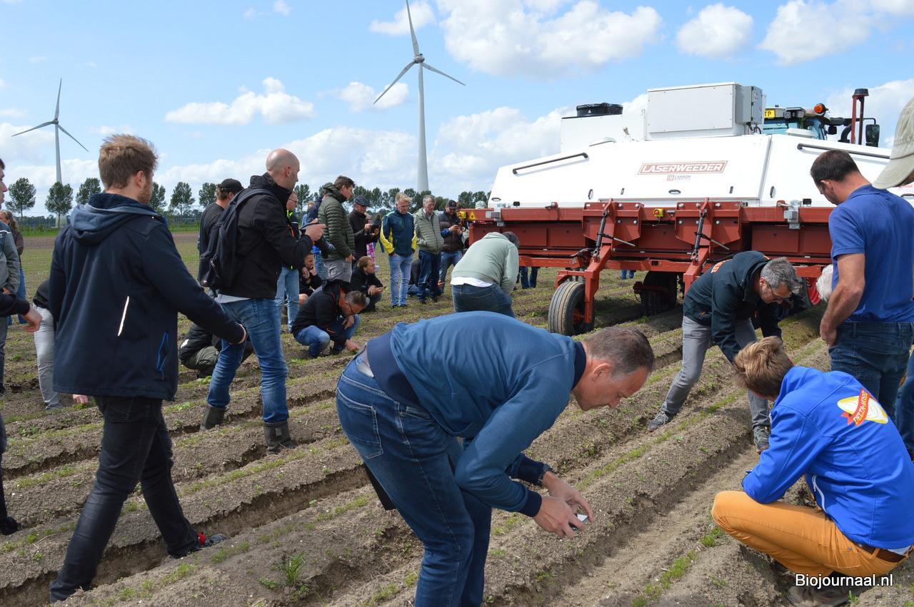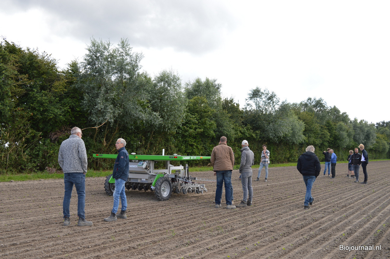 "Het is niet eenvoudig om al deze machines bij elkaar te krijgen. Ik ben heel blij dat alle leveranciers er zijn. Er zijn er nog niet zoveel in de praktijk. De ontwikkelingen hierin zijn de laatste drie jaar in een stroomversnelling geraakt. Dit demoveld met jonge peen is expres laat gezaaid."